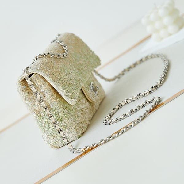 後払い 国内発送 シャネル ミニ フラップ バッグ スパンコール ライトグリーン AS3965 B10633NO020
