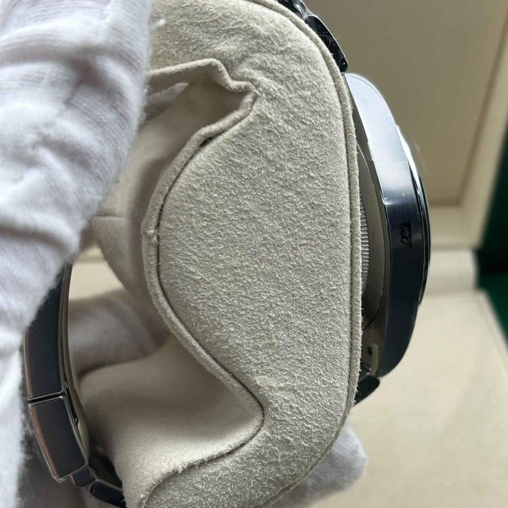 ベルト:オイスターデザインベルトは904Lグレードステンレススチールで作り出された平たい3ピースリンクであり、DLCスクラッチプロティングコーティングを施されています。しっかりとしたネジ山により、楽にベルト調整を実現し、5ミリをコンフォートエクステンションリンク(イージリンクとも言う)を備えた折りたたみ式オイスターロック安全クラスプも備えています。