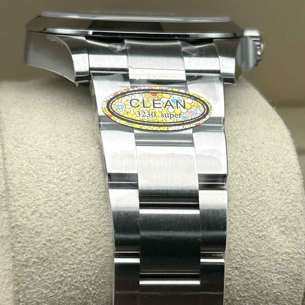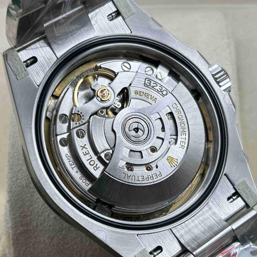 ムーブメント:常磁性青色合金パラクロム ヘアスプリングと高性能パラフレックス ショックアブソーバーを備えたクローン ロレックス 3230 スイス製ムーブメントが搭載されています。正しいシリアル番号と内側と外側の同一のマーキングが含まれており、オリジナルと見分けがつかないです。ムーブメントすべての部品は正規品と交換可能です。パーペチュアル ローターにより、自動機械式双方向自動巻きを実現しています。スムーズなスイープ秒針は 28,800 VPH (4Hz) で動作し、精度は (-4/+6 秒/日) 以内で、COSC 認証制限内に十分に収まり、パワーリザーブは約70時間に達します。