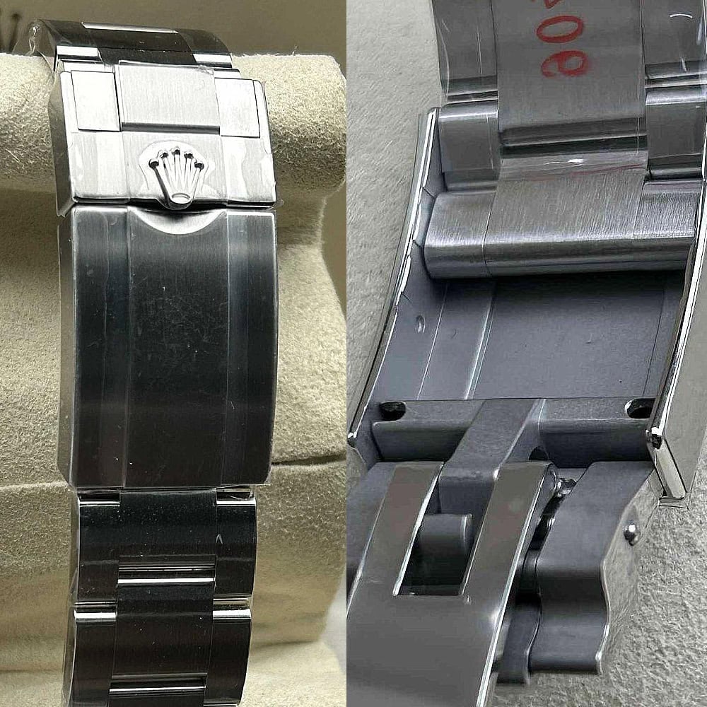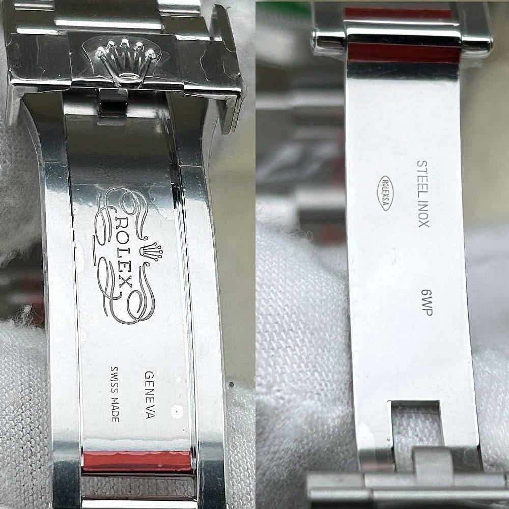 ケース:クリーンファクトリークローンウォッチは頑丈な904Lステンレススチールを採用し、スムースベゼルとモノブロック構造を誇っています。本物のロレックス904Lスチールと同一です。スクリュー式ケースバックとツインロック二重防水システムねじ込み式リューズを備えています。Rehautリンクに刻まれたROLEXROLEXレザー刻印と施されたDLCスクラッチプロティングコーティングは時計の本物らしさと耐久性を確保しています。寸法と重さは完璧に正規品と一致しています。