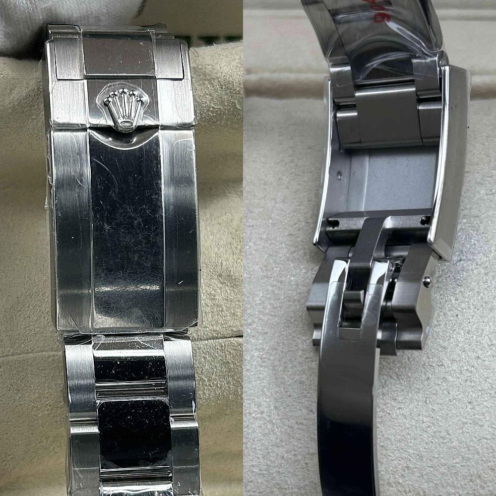 ケース:クリーンファクトリークレプリカは40mm ソリッド 904L ステンレス鋼モノブロック構造を誇り、本物のロレックス スチールを忠実に再現しています。クリュー式ケースバックと巻き上げリューズを備えており、時計の耐久性と防水性を確保しています。Rehautリンクに刻まれた象徴的なROLEXROLEXレザー刻印は時計の本物らしさを高めており、施されたDLCスクラッチプロティングコーティング加工は時計の永続的なエレガンスをキープできます。時計の寸法と重さは完璧的に正規品と一致しています。更に、すべての部品は正規品と交換性があります。