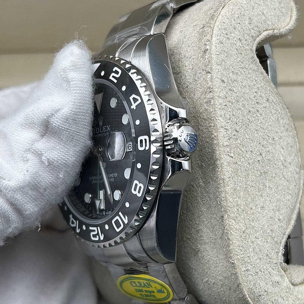 ムーブメント:ロレックス3285スイスクローンムーブメントはGMT 24時間針とスムーズなスイープ秒針は28,800VPH(4Hz)で作動するのを特徴としています。クリーンファクトリーはすべての部品がオリジナルと交換可能であることを保証し、耐磁性ブルーヘアスプリング(Parachrom)とGlucydur耐磁性金メッキテンプを採用しています。精度はCOSC認定の範囲内で、(-4/+6秒/日)以内に抑えられており、パワーリザーブはほぼ48時間に達します。