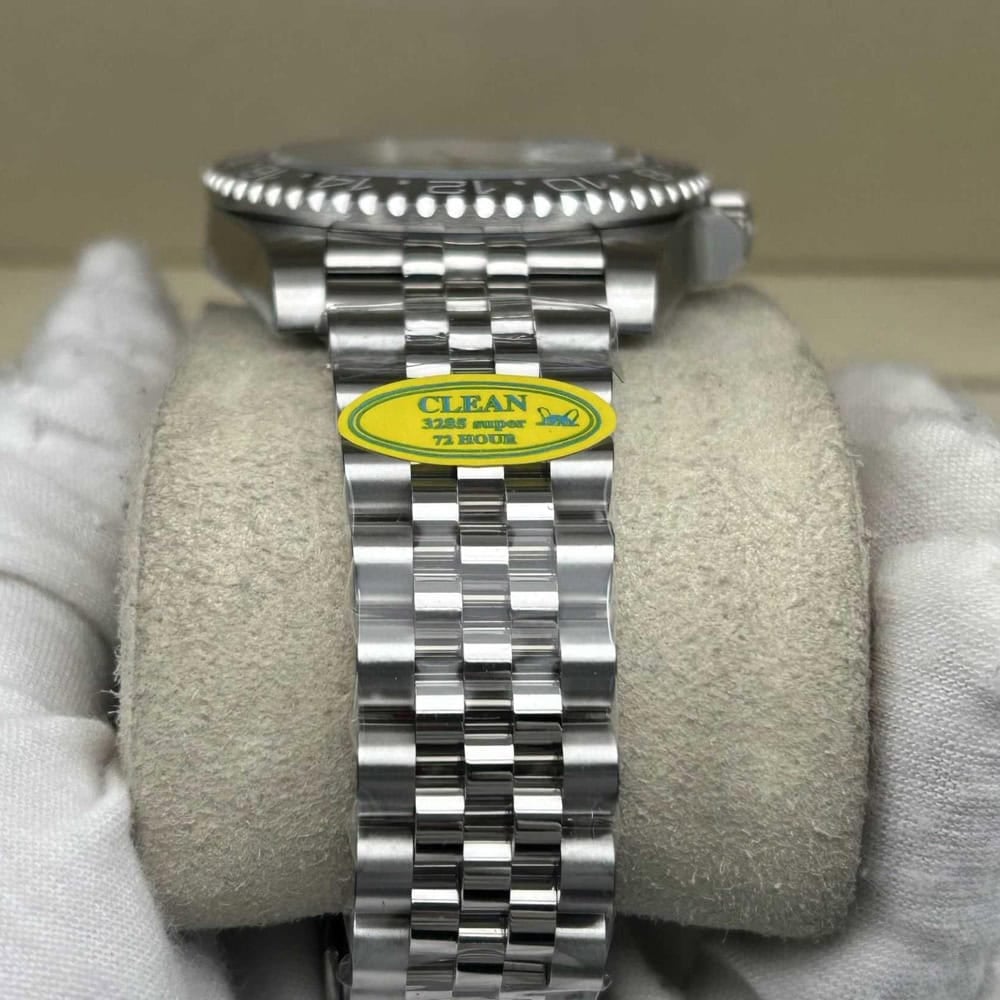 ムーブメント:ロレックス3285スイスクローンムーブメントはGMT 24時間針とスムーズなスイープ秒針は28,800VPH(4Hz)で作動するのを特徴としています。クリーンファクトリーはすべての部品がオリジナルと交換可能であることを保証し、耐磁性ブルーヘアスプリング(Parachrom)とGlucydur耐磁性金メッキテンプを採用しています。精度はCOSC認定の範囲内で、(-4/+6秒/日)以内に抑えられており、パワーリザーブはほぼ48時間に達します。