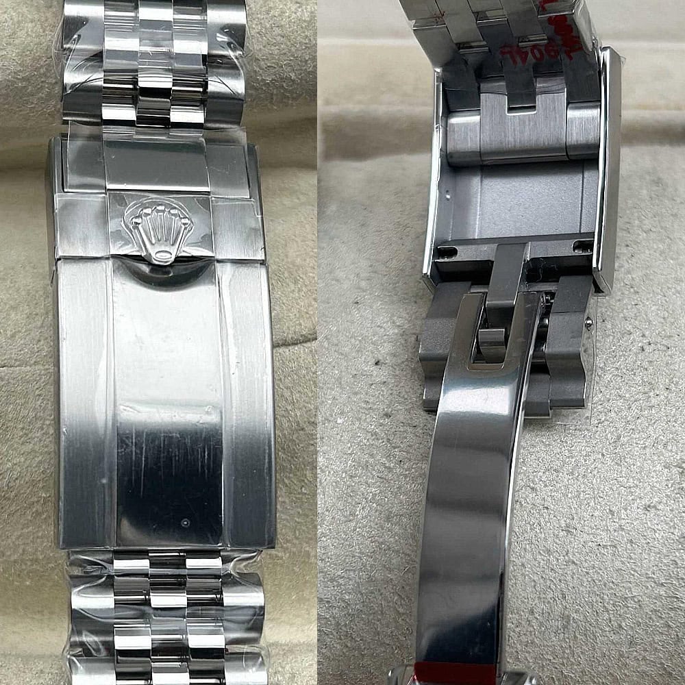 ケース:クリーンファクトリーレプリカは40mm ソリッド 904L ステンレス鋼モノブロック構造を誇り、本物のロレックス スチールを忠実に再現しています。クリュー式ケースバックと巻き上げリューズを備えており、時計の耐久性と防水性を確保しています。Rehautリンクに刻まれた象徴的なROLEXROLEXレザー刻印は時計の本物らしさを高めており、施されたDLCスクラッチプロティングコーティング加工は時計の永続的なエレガンスをキープできます。時計の寸法と重さは完璧的に正規品と一致しています。更に、すべての部品は正規品と交換性があります。