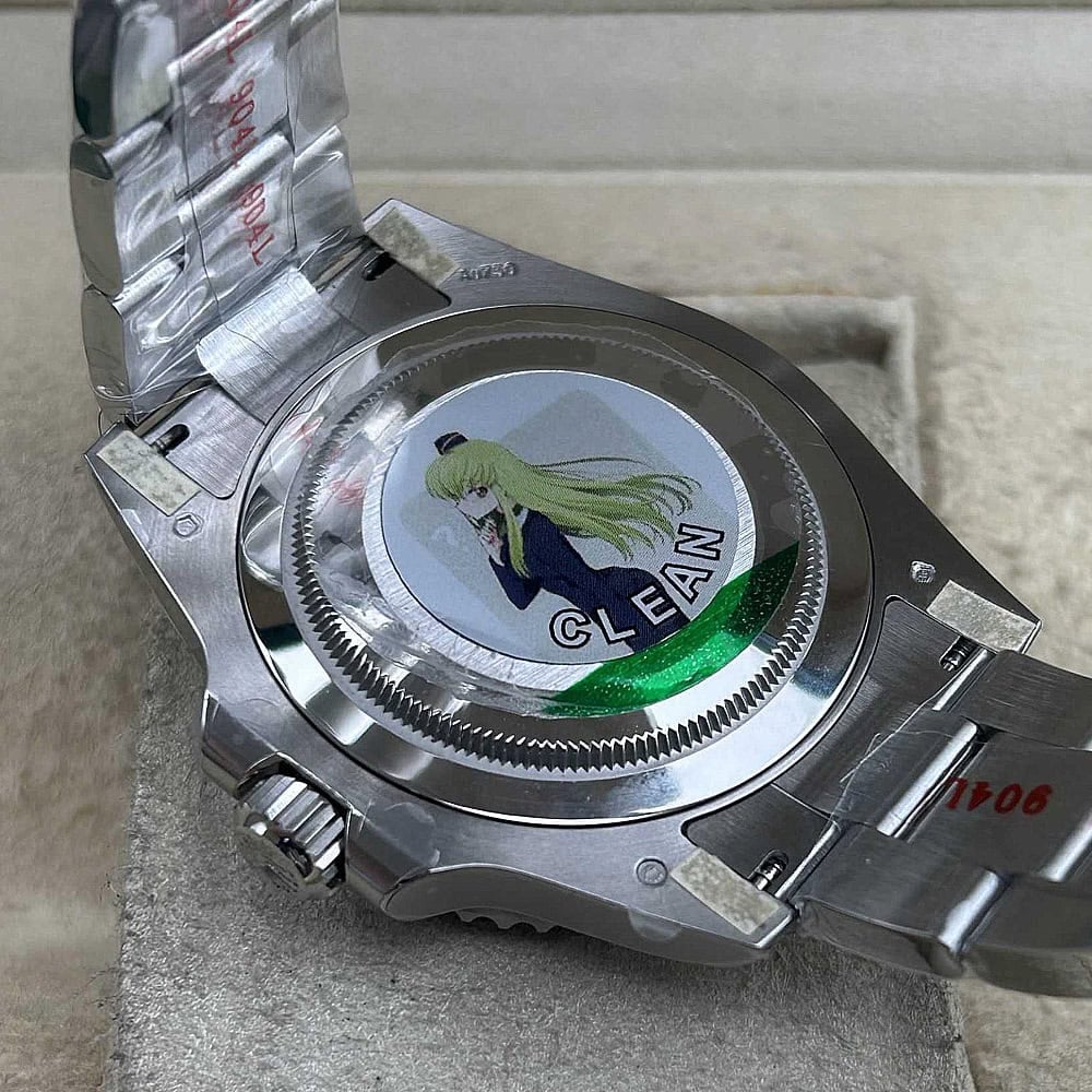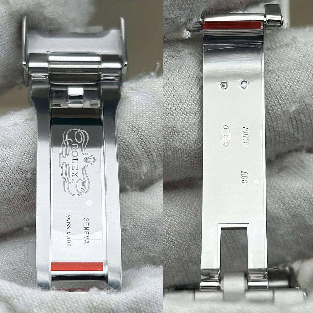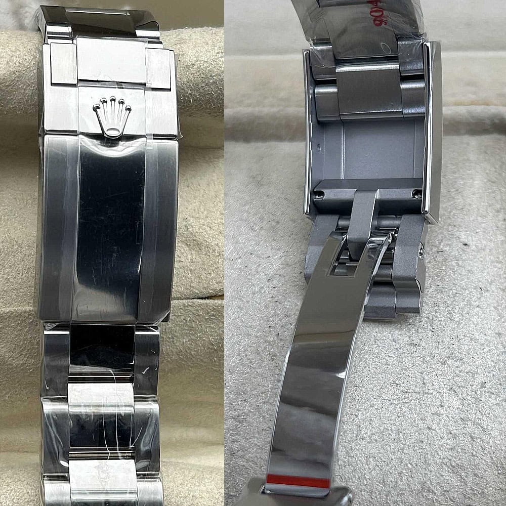 ケース:18Kホワイトゴールドコーティングが施された頑丈な904Lステンレススチールで作り出されたケースは、仕上げが完璧です。 ケースのサイズはオリジナルと同じ40mmで、スイス製PHEラバーシール付きの頑丈なねじ込み式リューズ、精巧な刻印、そしてROLEXROLEXのリューが特徴です。 これらはすべて、最高の品質を確保するために手作業で仕上げられています。
