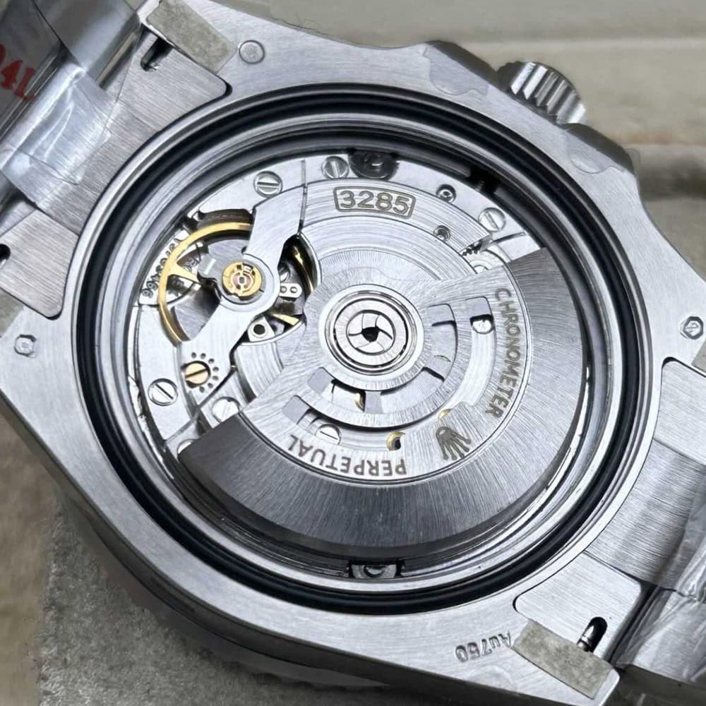 ムーブメント:ロレックス3285クローンムーブメントを搭載されており、GMT24時間針により、第2時間帯を表示できます。正しいシリアル番号と内側と外側の同一のマーキングが刻まれています。耐磁性ブルーヘアスプリング(Parachrom)とGlucydur耐磁性金メッキテンプが精度を確保できます。すべての部品は正規品と交換できます。パーペチュアルローターにより、オートマチック機械式両方向自動巻きを実現しています。スムーズなスイープ秒針は28,800VPH(4Hz)で作動し、31石(レッドルビー)が使用されています。精度を(-4/+6秒/日)以内に抑えられており、COSC認定の範囲内です。パワーリザーブはほぼ48時間に達します。