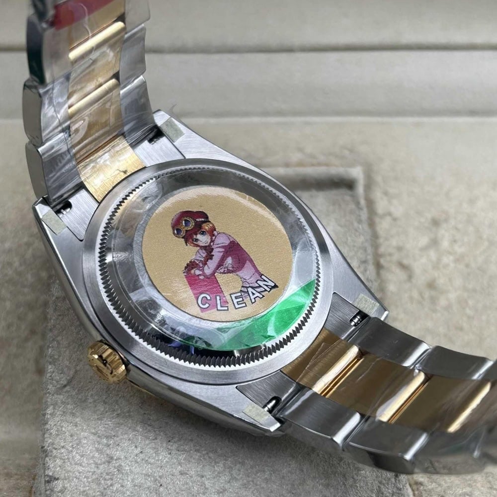 ケース:クリーンファクトリークローンウォッチは豪華な36mmのツートン18kイエローゴールドコーティングを施された904Lステンレススチールを採用し、スムースベゼルとモノブロック構造を誇っています。本物のロレックス904Lスチールと同一です。スクリュー式ケースバックとツインロック二重防水システムねじ込み式リューズを備えています。Rehautリンクに刻まれたROLEXROLEXレザー刻印と施されたDLCスクラッチプロティングコーティングは時計の本物らしさと耐久性を確保しています。寸法と重さは完璧に正規品と一致しています。