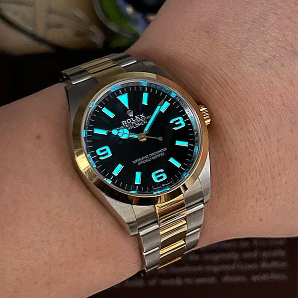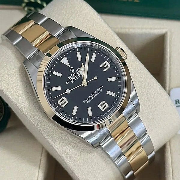 ケース:36mmのツートン18kイエローゴールドコーティングを施された904Lステンレススチールを採用し、