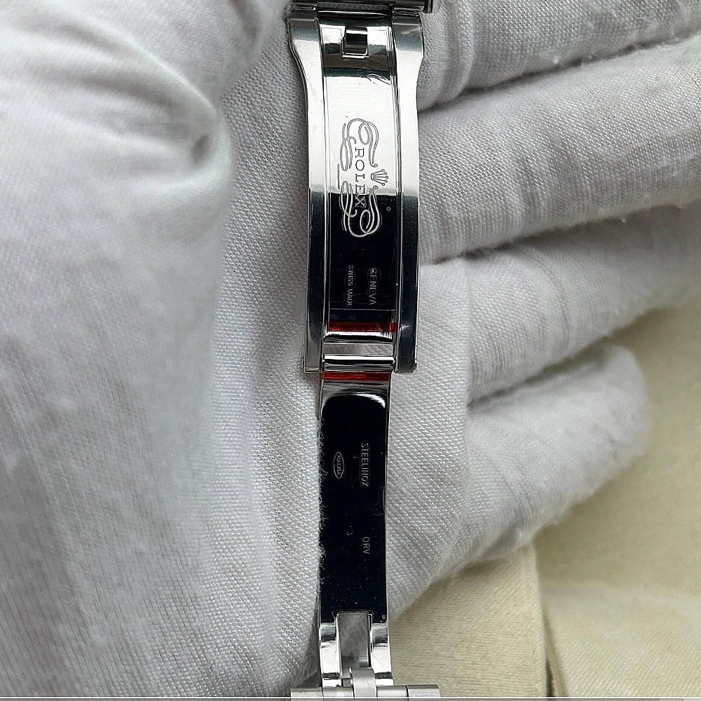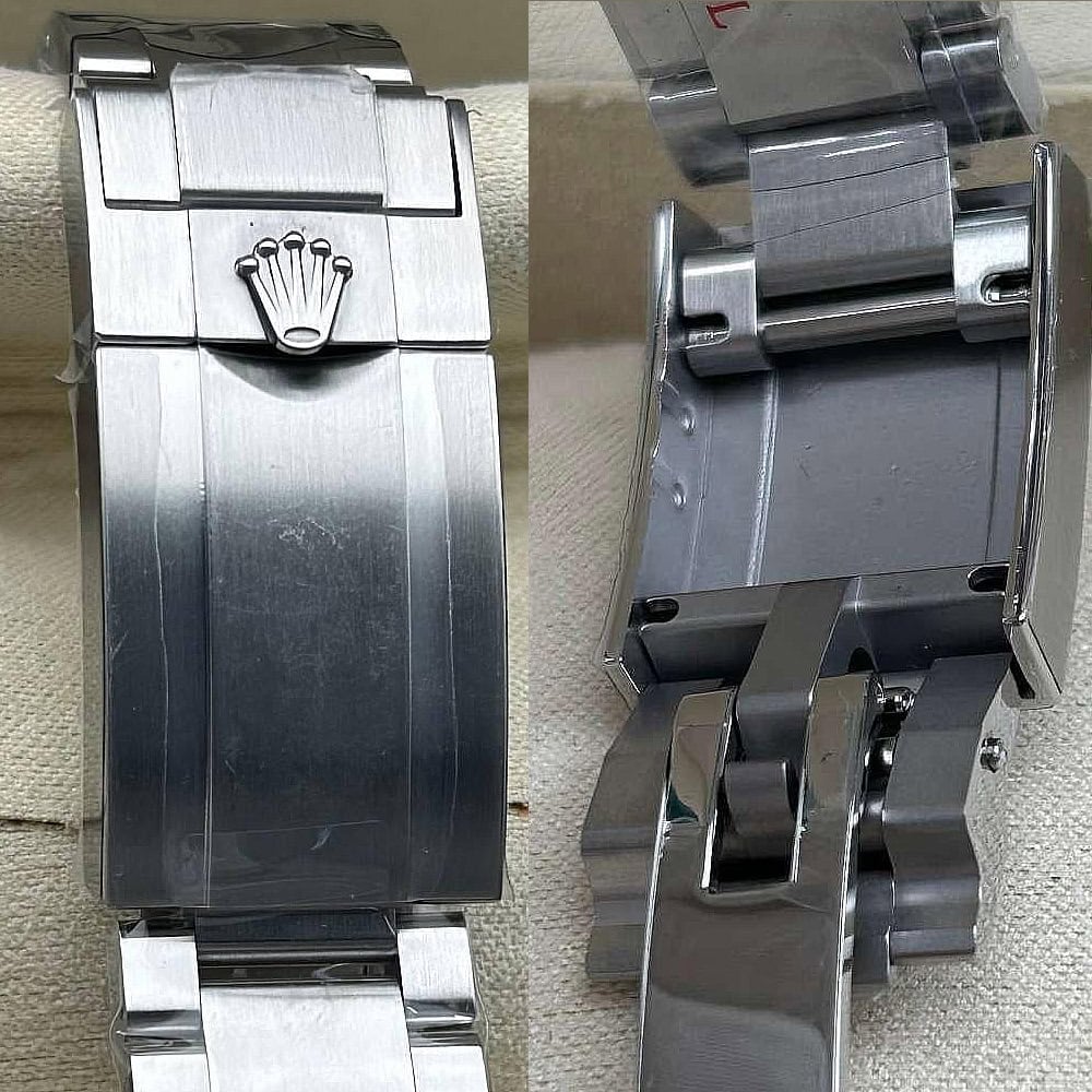 ベルト:ベルトは3列平たいリンクのオイスタータイプにデザインされており、クリーンファクトリーはソリッド904Lステンレススチールを採用し、ベルトにDLCスクラッチプロティングコーティング加工を施しました。しっかりとしたネジによって簡単にベルトを調整できます。5ミリをコンフォートエクステンションリンク(イージリンクとも言う)を備えた折りたたみ式オイスターロック安全クラスプも備えています。