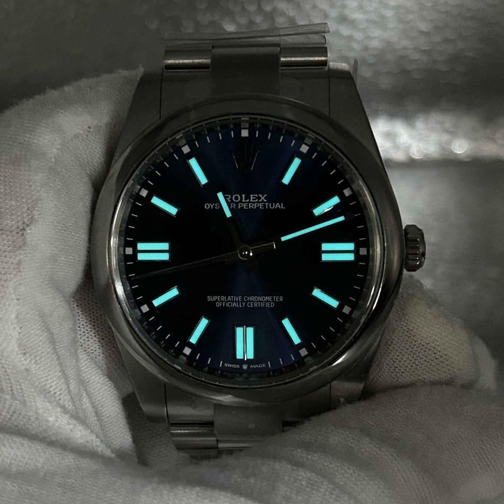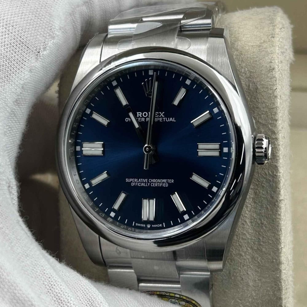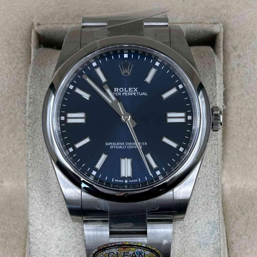 ケース:41ミリケースを備えており、この時計は904Lステンレススチールによってモノブロック構造にデザインされております。904Lグレードのスチールはロレックスオイスターステンレススチール時計に採用されており、耐錆性で知られたスチールと同じです。ケースにはねじ込み式ケースバックとリューズを備えており、時計の防水性を高めております。Rehaut リンクに刻まれたROLEX ROLEX刻印も、寸法と重さは正規品と一致し、1:1で正規品とマッチすることを確保しております。