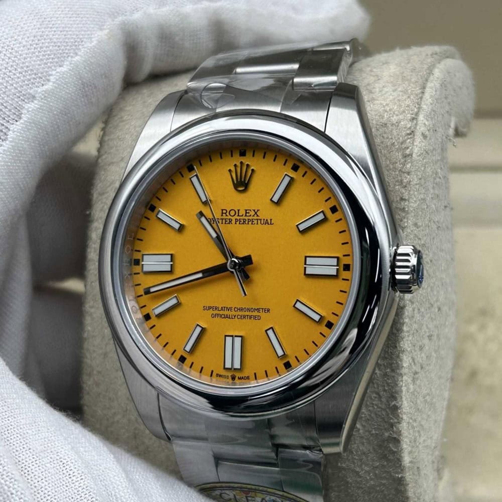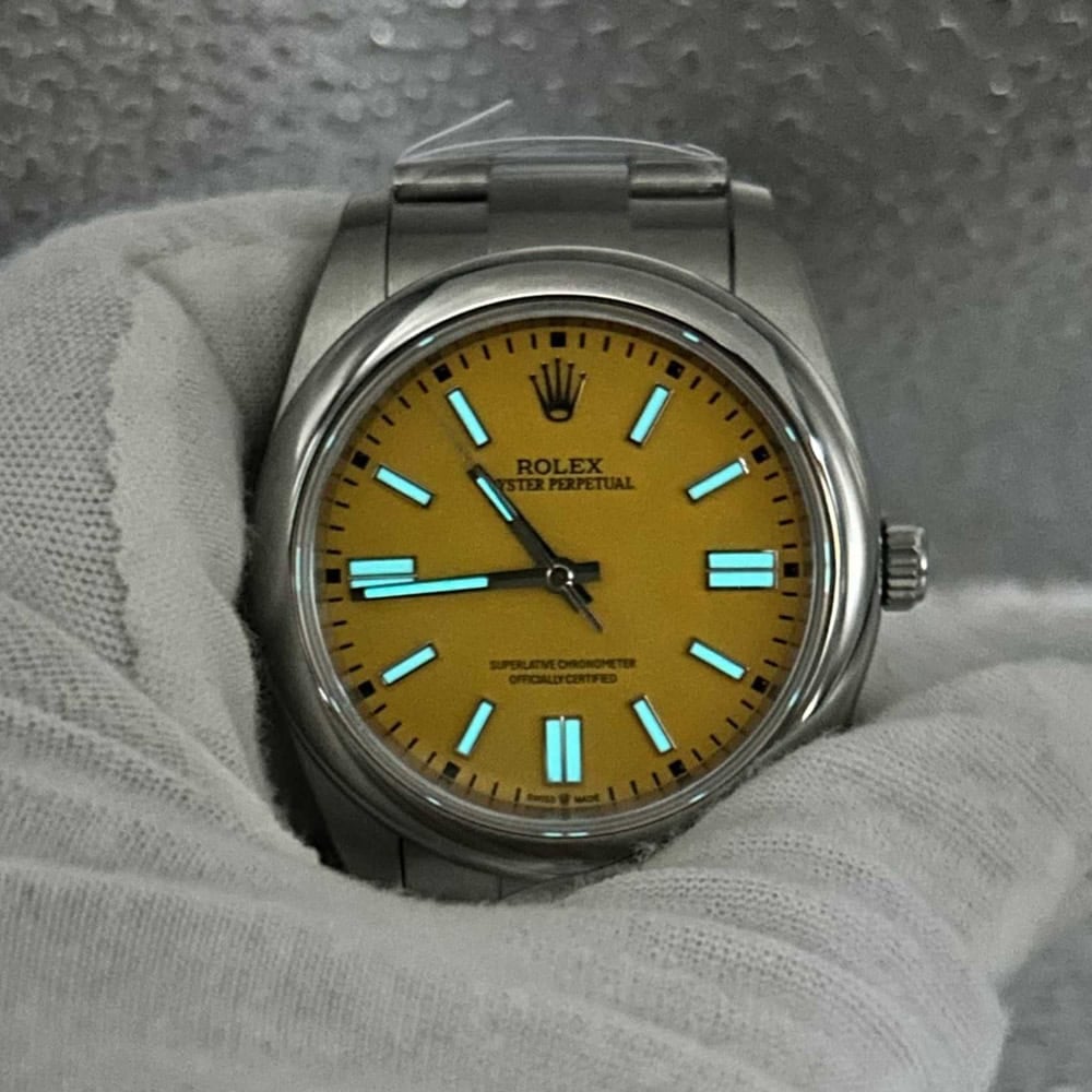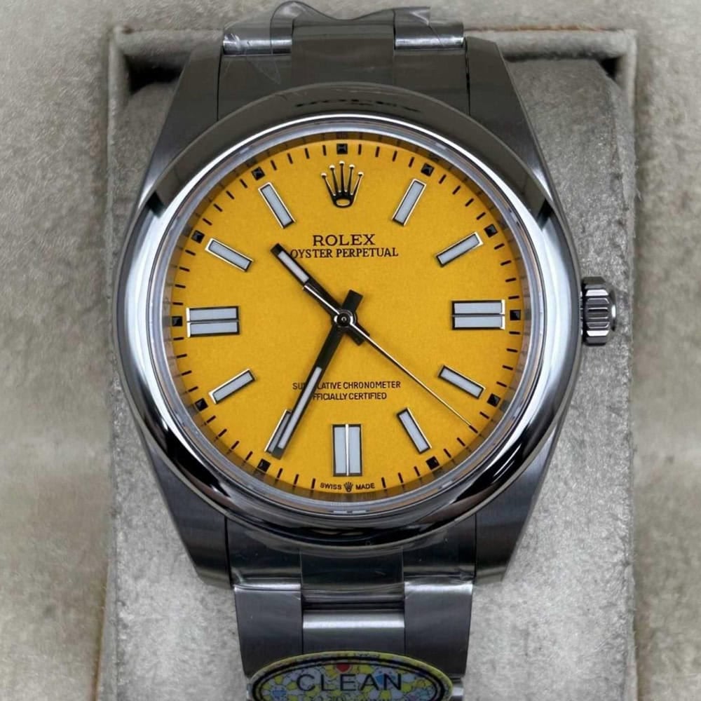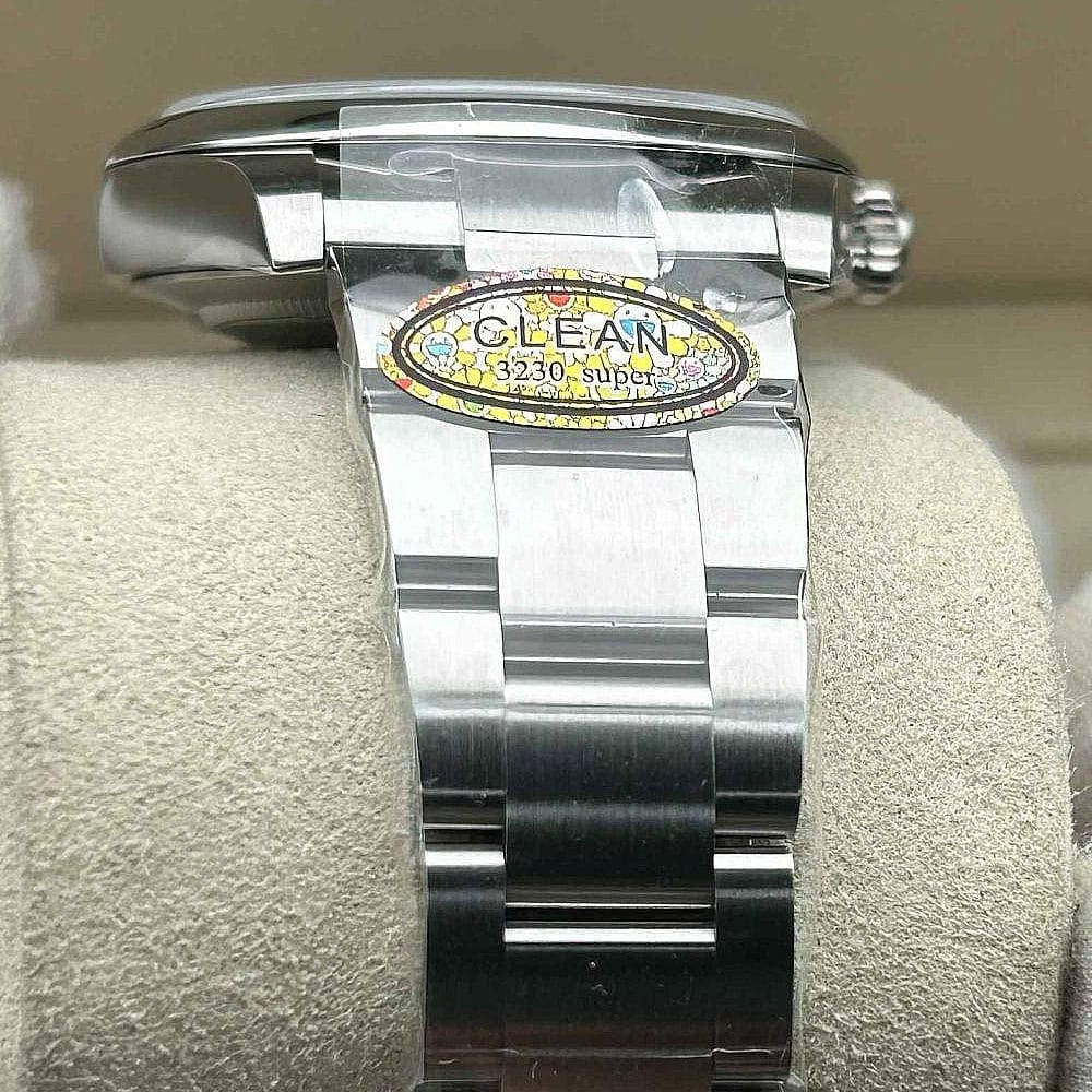 ケース:41ミリケースを備えており、この時計は904Lステンレススチールによってモノブロック構造にデザインされております。904Lグレードのスチールはロレックスオイスターステンレススチール時計に採用されており、耐錆性で知られたスチールと同じです。ケースにはねじ込み式ケースバックとリューズを備えており、時計の防水性を高めております。Rehaut リンクに刻まれたROLEX ROLEX刻印も、寸法と重さは正規品と一致し、1:1で正規品とマッチすることを確保しております。