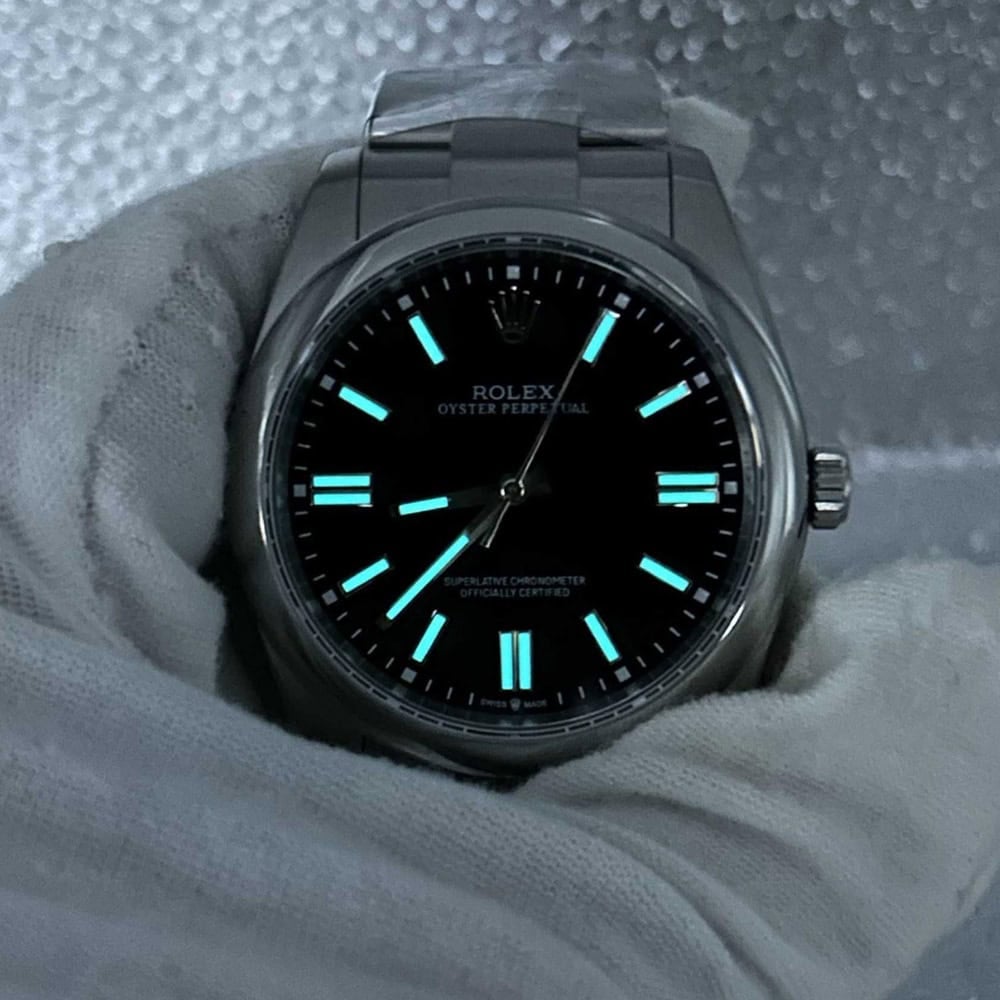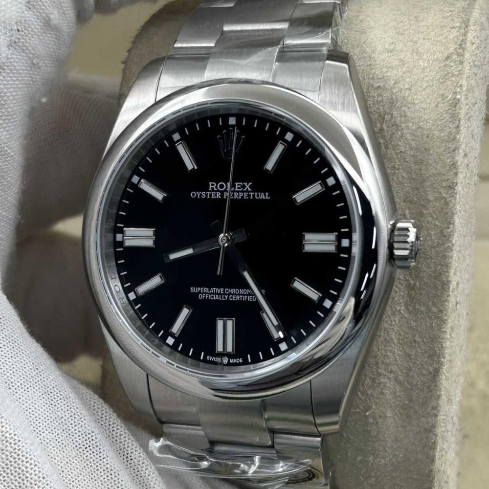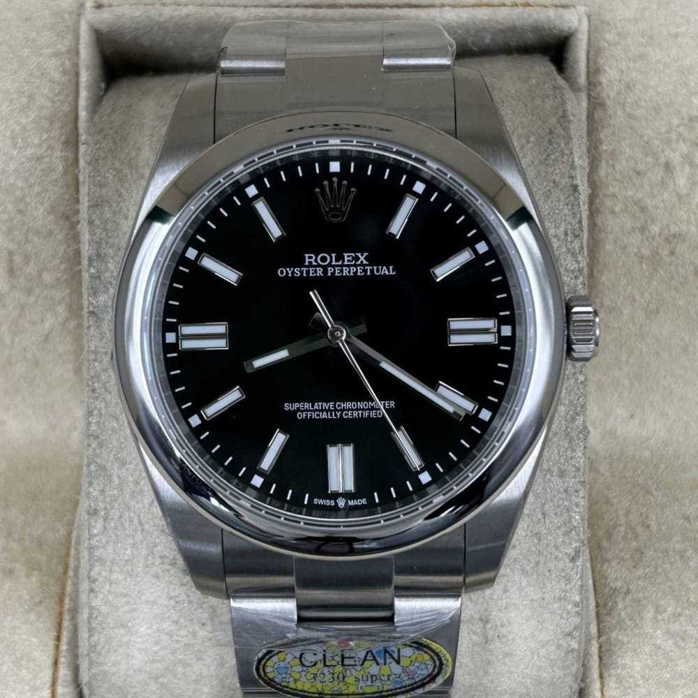 ケース:41ミリケースを備えており、この時計は904Lステンレススチールによってモノブロック構造にデザインされております。904Lグレードのスチールはロレックスオイスターステンレススチール時計に採用されており、耐錆性で知られたスチールと同じです。ケースにはねじ込み式ケースバックとリューズを備えており、時計の防水性を高めております。Rehaut リンクに刻まれたROLEX ROLEX刻印も、寸法と重さは正規品と一致し、1:1で正規品とマッチすることを確保しております。