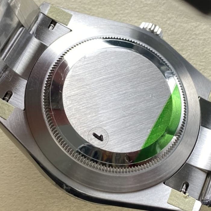 風防:耐傷性あるサファイアガラスを採用し、6時のところにレザーによる透かし王冠刻印があります。