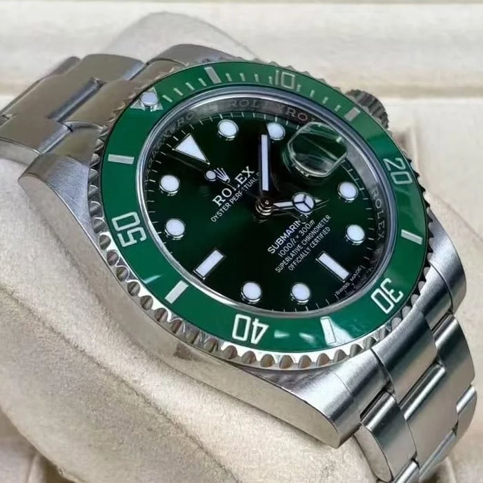 時計は優れた耐摩耗性と耐傷性を持ち、精密な逆回転防止60分積算計グリーン?ベゼルと、セラクロム?テクノロジー
