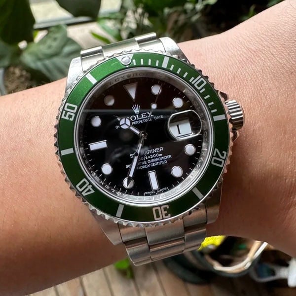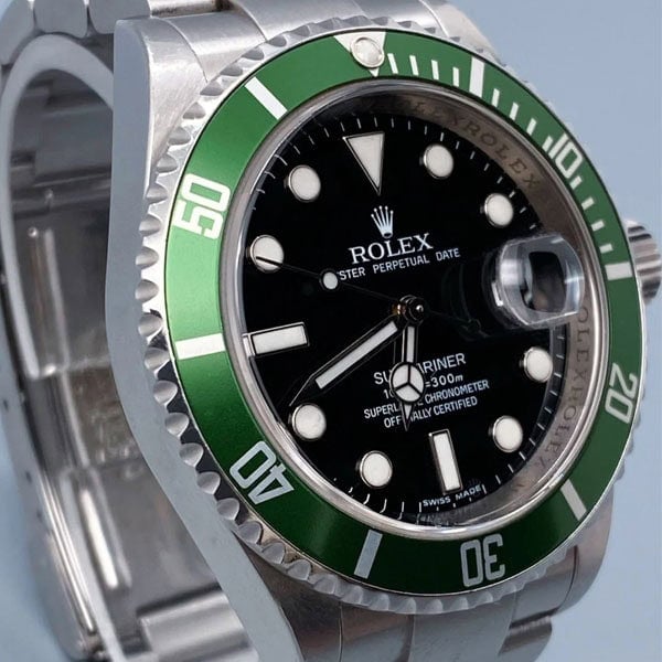 ロレックスのブランドカラーであるグリーンをベゼルに採用した点が特徴で、