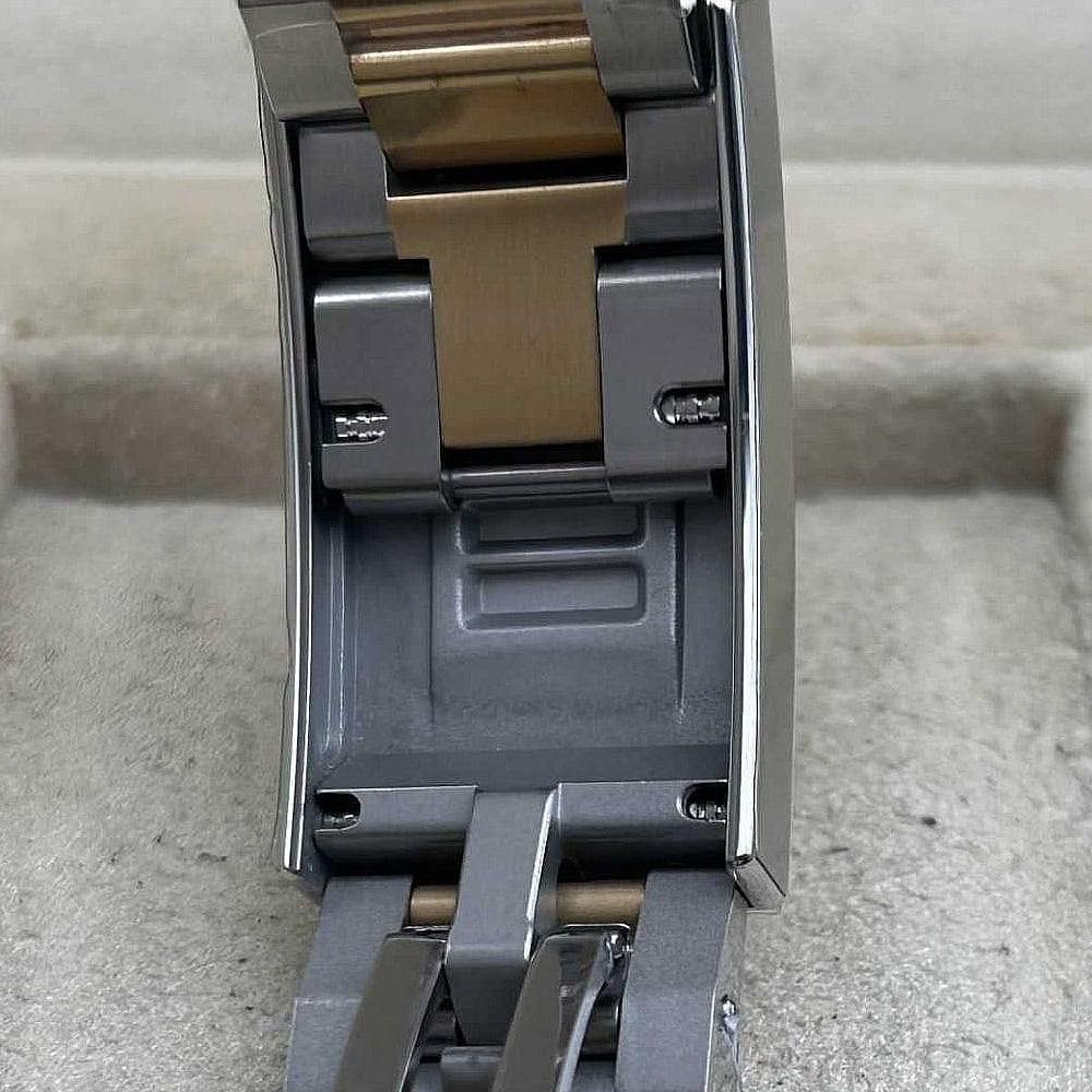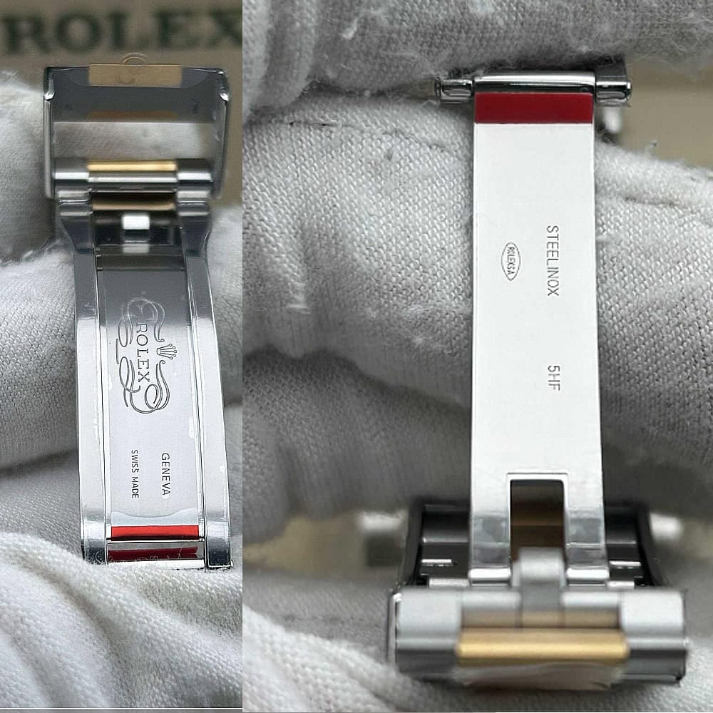 ケース:クリーンファクトリーは極上の伝統を踏襲して、18Kイエローゴールド加工を施されたソリッド904Lステンレススチールを採用して、作り出されたモノブロック構造のケースは本物ロレックススチールとそっくりです。40ミリのケースはスリムラグを備えています。ラグ幅は正規品と同じです。スクリュー式ケースバックと巻き上げリューズを備えています。RehautリンクにはROLEXROLEXレザー刻印があり、DLCスクラッチプロティングコーティングも施されています。寸法と重さは完璧に正規品と一致し、すべての部品は正規品と交換することができます。