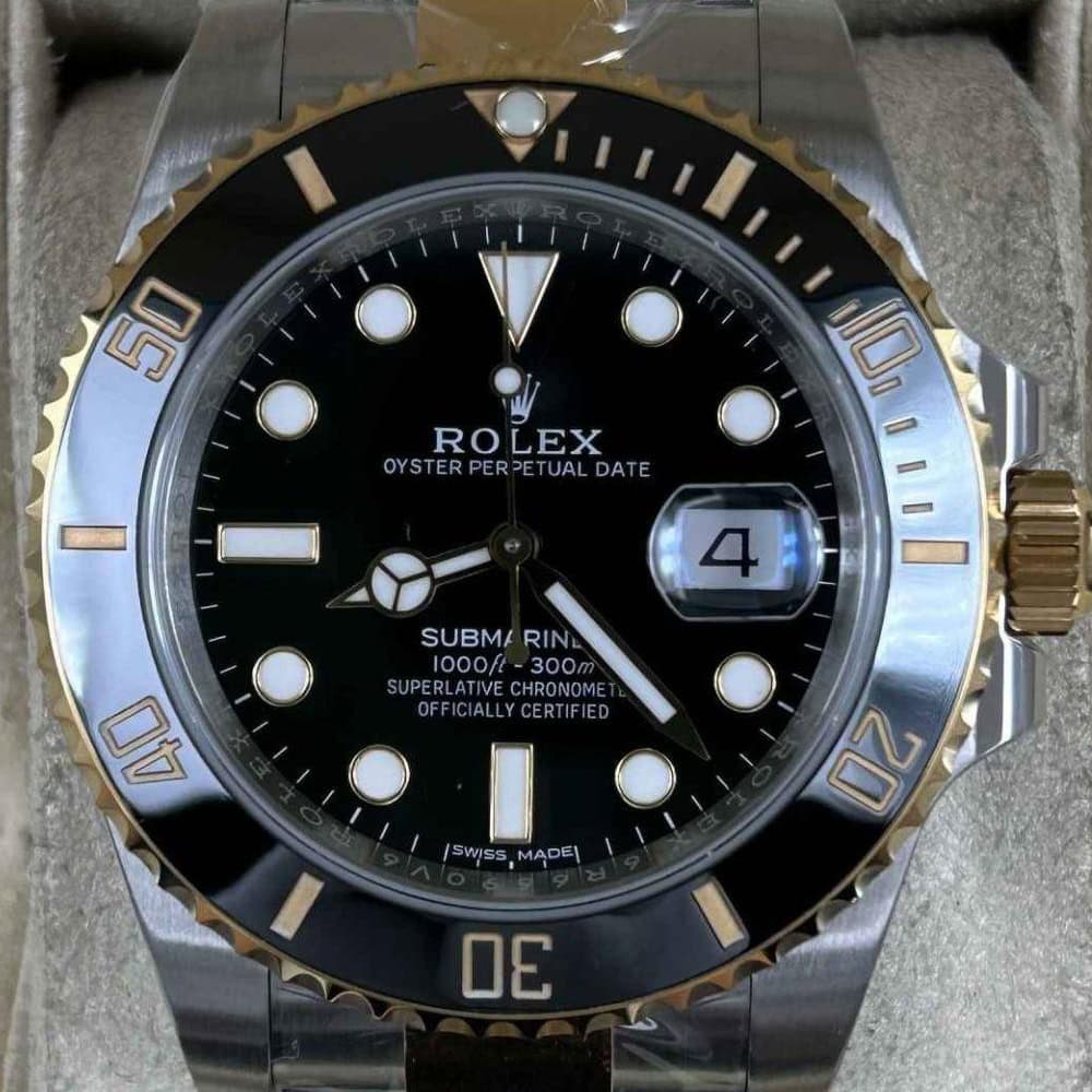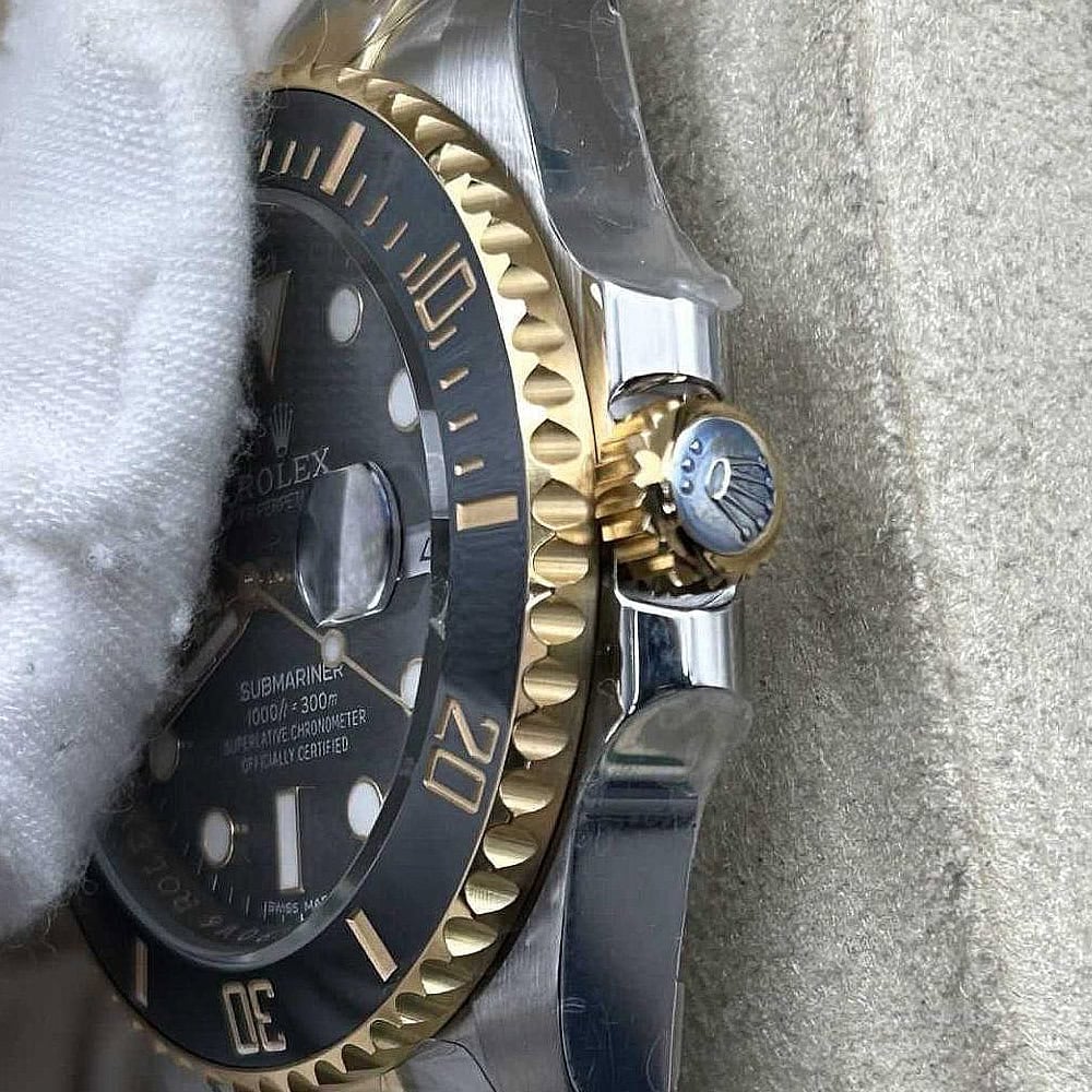文字盤:この時計はエレガントなブラックラッカー文字盤を誇り、6 時の位置に SWISS と MADE の間にある象徴的なロレックス 王冠を備えています。アワーマーカーと針には明るいスーパールミノバブルーの発光コーティングを施されており、暗闇に9時間まで均一に発光できます。クリーンファクトリーは時計の高精度なテキスト、プリント、刻印、デイトのフォントとサイズに至るまで、100%正規品と一致することを確保しています。アワーマーカーと針に施された18Kイエローゴールドコーティングは色褪せないことを確保しています。時を経てもその輝きを失いません。