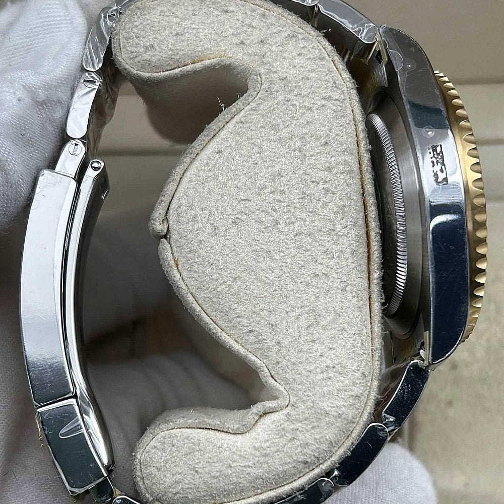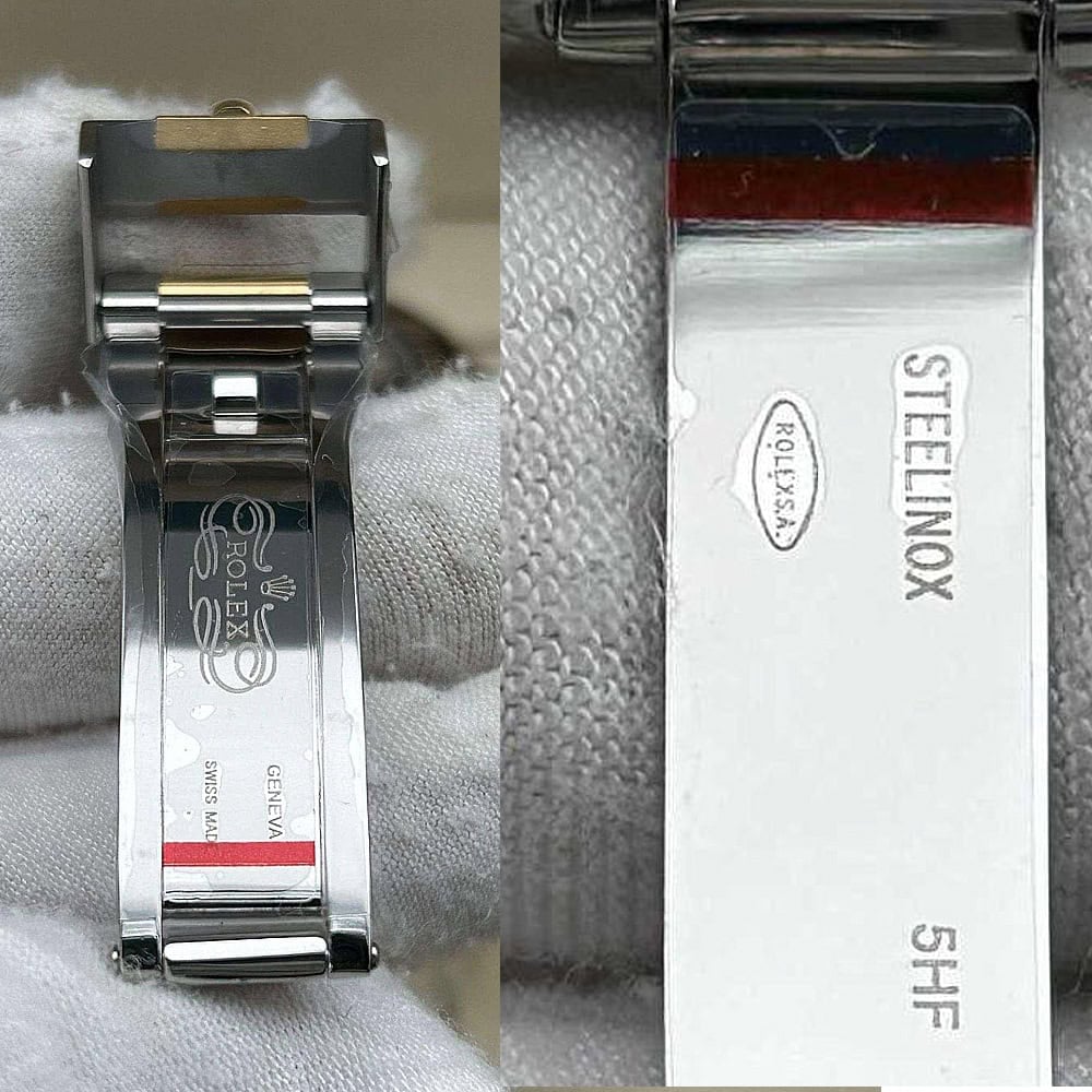 ベルト:フラートな3ピースリングを備えたオイスターデザインのブレスレットは正規品の20ミリケースラグと幅広のブレスレットにマッチします。18Kイエローゴールドコーティングされた904LステンレススチールにはDLCスクラッチプロティングコーティングが施されています。しっかりとしたネジ山、グライドロックダイバーズエクステンションシステムを含む折りたたみ式オイスターロック安全スクラップも備えています。