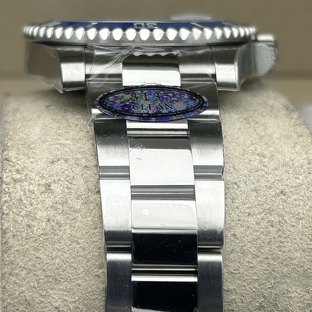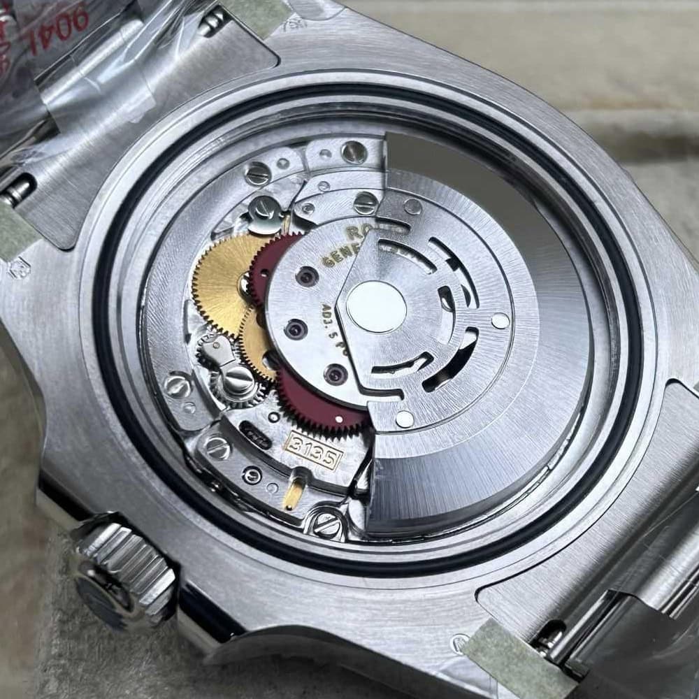 ムーブメント:丹念にクローンされた一体式3135ムーブメントはスイープ針が28,800 VPH (4Hz)でスムーズに作動することを確保しています。このムーブメントは精度を持っているだけではなく、正規品のような審美性も持っています。精度はCOSC認定範囲(-4/+6秒/日)以内に抑えられており、パワーリザーブはほぼ72時間に達します。