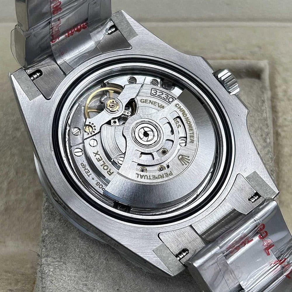 ムーブメント:このモデルは常磁性ブルー合金製パラクロム?ヒゲゼンマイと高性能パラフレックス?ショックアブソーバーを備えたスイス製ロレックス3230クローンムーブメントを搭載されております。ムーブメントには正しいシリアルナンバーと、オリジナルと見分けがつかないほど内外に同一のマーキングが施されています。ムーブメントすべての部品は正規品と交換性があります。パーペチュアルにより、オートマチック機械式両方向回転自動巻きを実現します。滑らかなスイープセコンド針は28,800 VPH (4Hz)で作動しています。精度はきちんとCOSC認定範囲(-4/+6秒/日)に抑えられており、パワーリザーブはほぼ70時間に達します。
