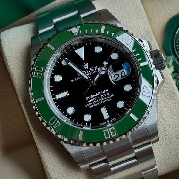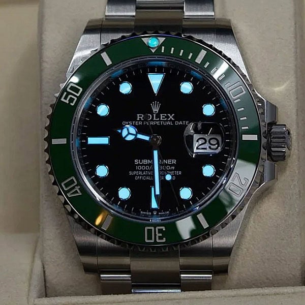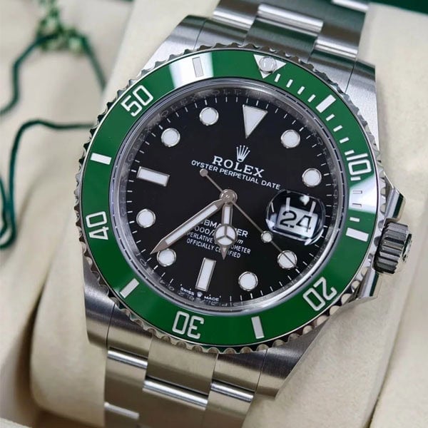 ベゼル:100%本物「セラミック」特徴的なグリーンセラミック製のベゼルはそのまま引き継がれています。