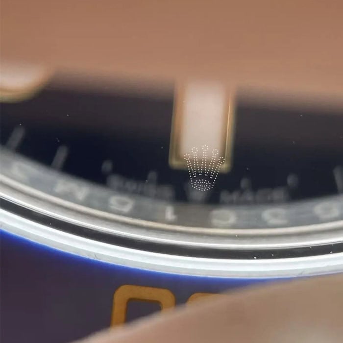 風防:6時のところにはレーザー刻印によるロレックス王冠ロゴがあります。