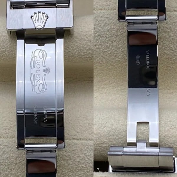 風防: サファイヤクリス 6時のところにはレーザー刻印によるロレックス王冠ロゴがあります。