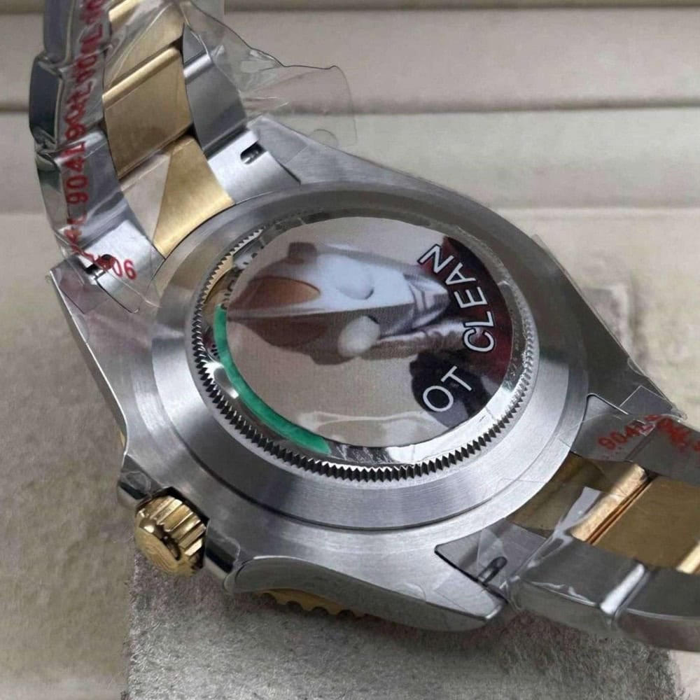ベルト:フラートな3ピースリングを備えたオイスターデザインのブレスレットは正規品の22ミリケースラグと幅広のブレスレットにマッチします。18Kイエローゴールドコーティングされた904LステンレススチールにはDLCスクラッチプロティングコーティングが施されています。しっかりとしたネジ山、グライドロックダイバーズエクステンションシステムを含む折りたたみ式オイスターロック安全スクラップも備えています。