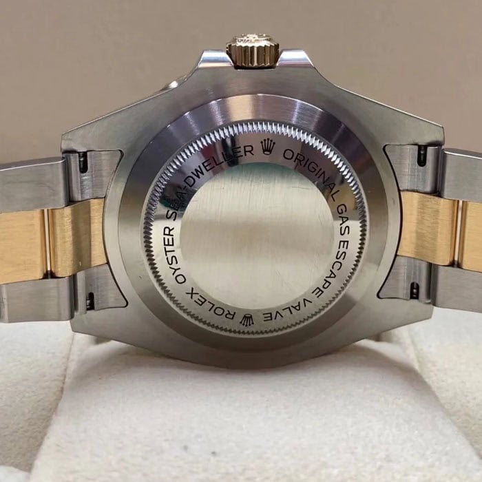 ブラックダイアルには、"Sea-Dweller″の名前がイエローゴー?ルドを思わせるイエローカラーで記されている。