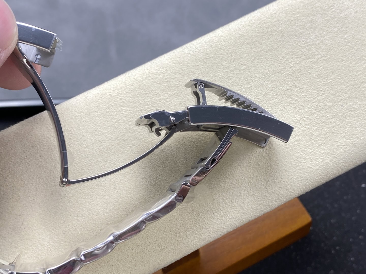 高いコストを厭わずに、ベゼル、風防ガラス、内部カバー、ダイヤル、針、バックルなどの部品を本物と見分けがつかないレベルで製造しています。