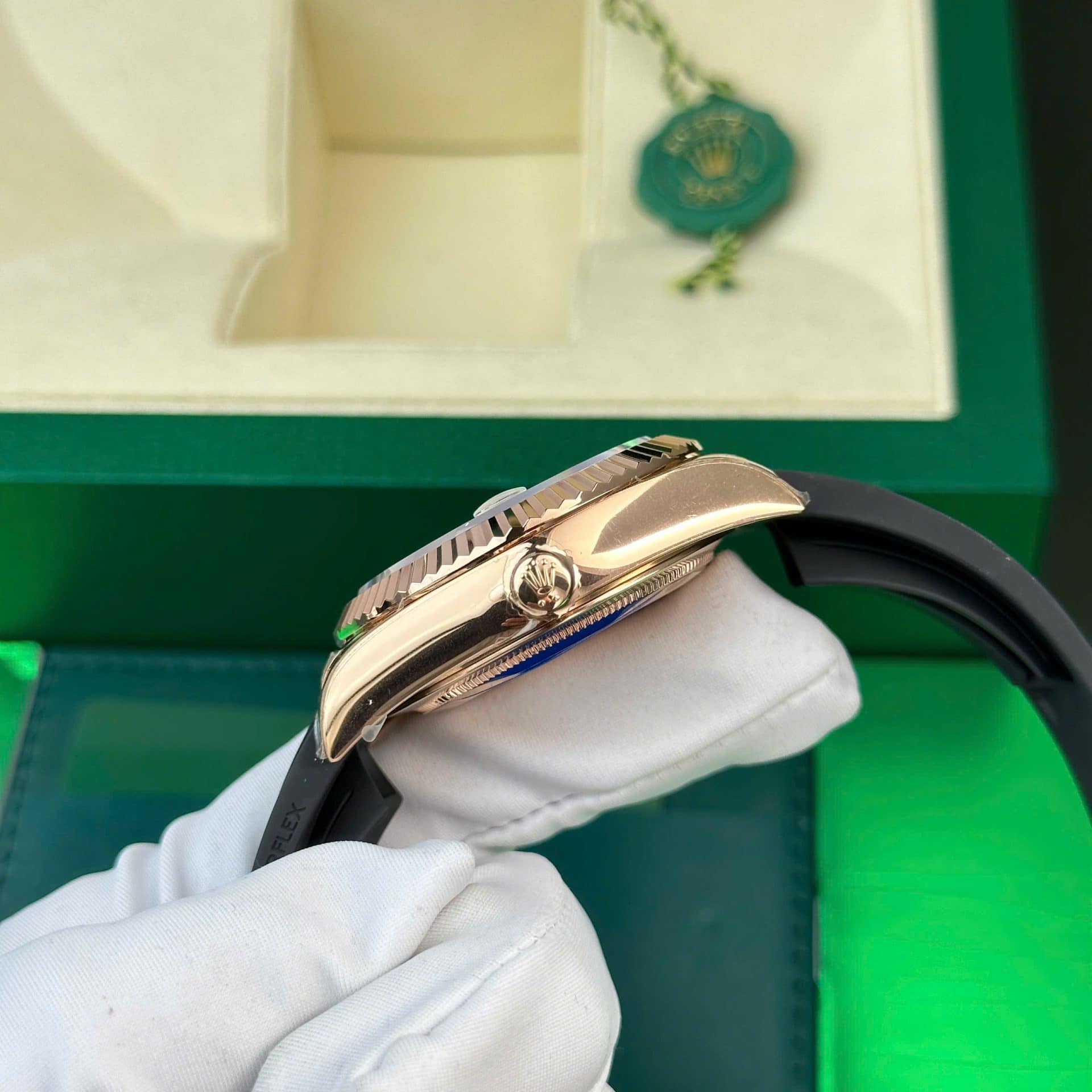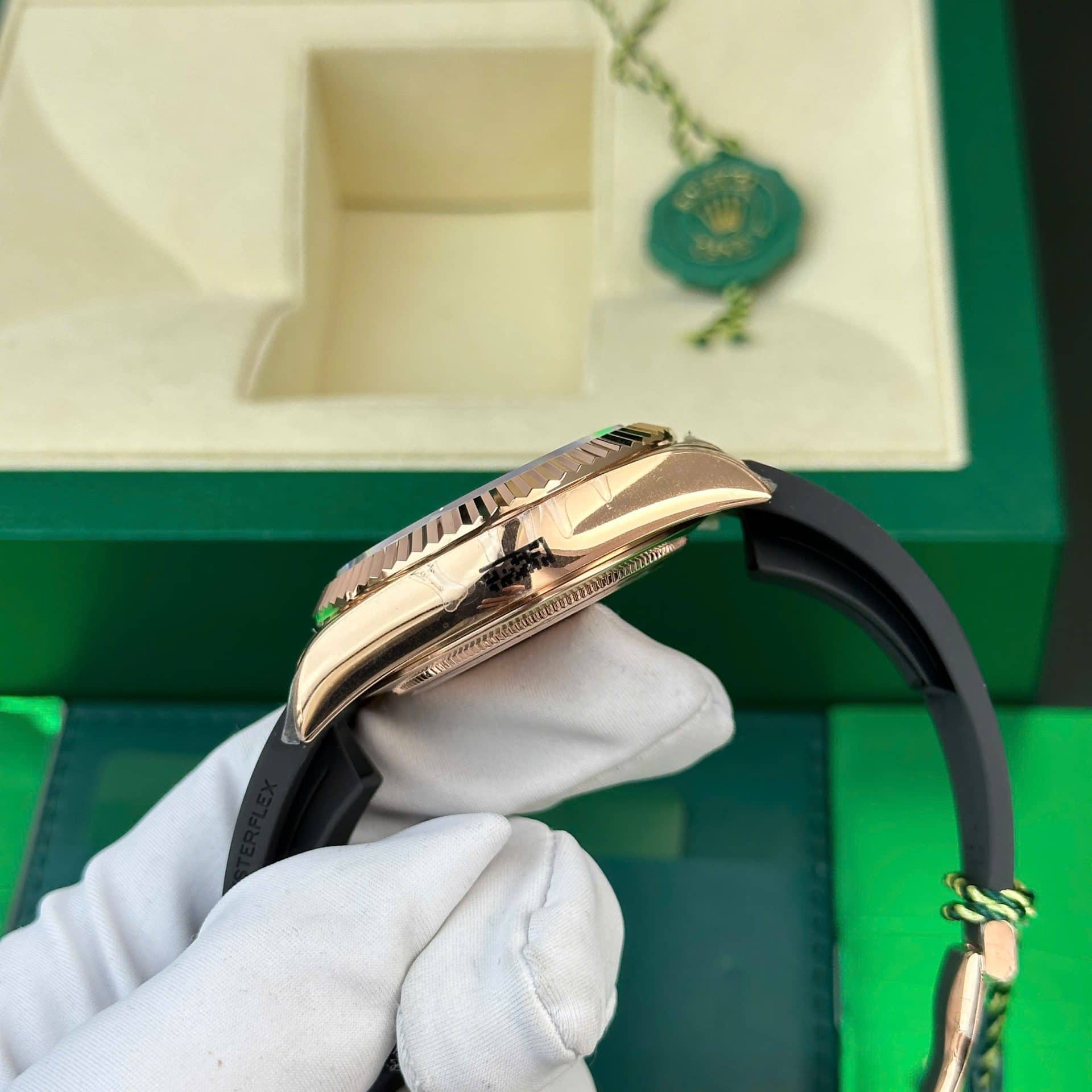 ケース:42mmのオイスターケースはロレックスのオイスタースチールにマッチし、ソリッドな904Lステンレススチールのモノブロック構造の上に18kピンクゴールドコーティングを施された