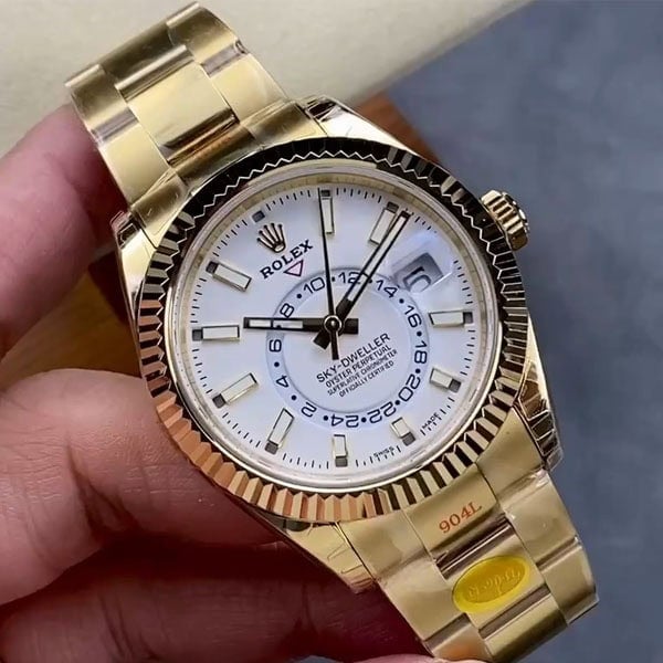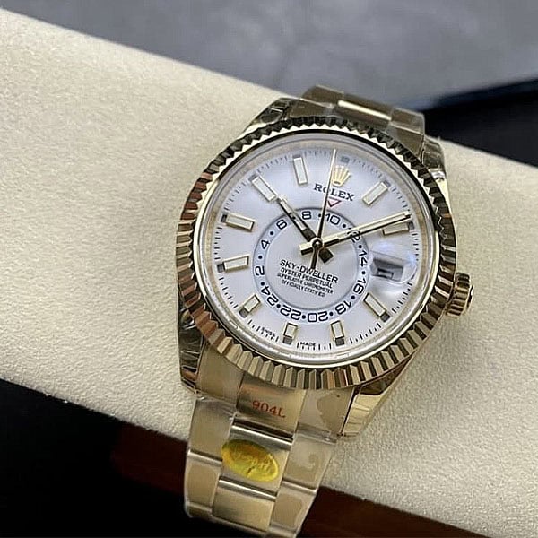 ケース:42mmのオイスターケースはロレックスのオイスタースチールにマッチし、ソリッドな904Lステンレススチールのモノブロック構造の上に18kゴールドコーティングを施された