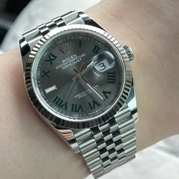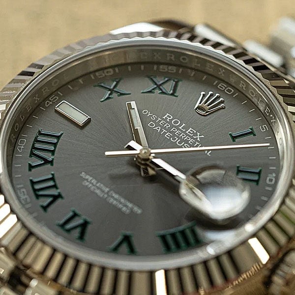 にグリーンのローマンインデックス(ウィムブルドン文字盤とも呼ばれます)が特徴的なデザインが存在します。