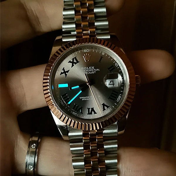 今ではロレックスの象徴的なデザイン要素となっています。スレートダイアルのサンレイ仕上げは、