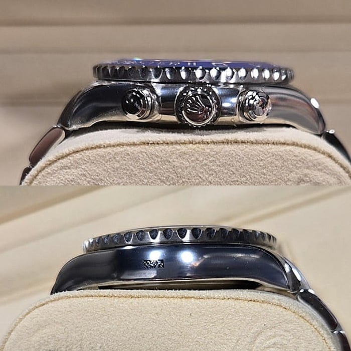 2時位置,4時位置ボタンはカウントダウン機能、クロノグラフ