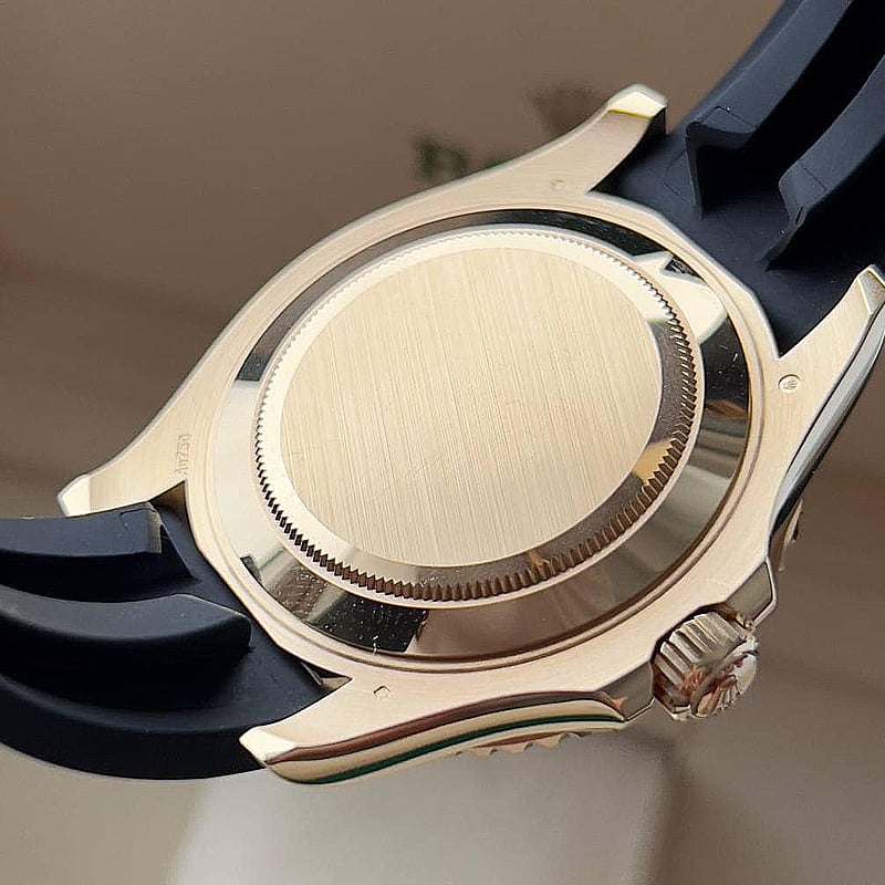 ベルトは天然ラバーベルト刻印質感完璧 ラバーベルトはカーブを描くようにしなり腕にしっかりフィットします。