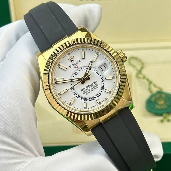 ケース:42mmのオイスターケースはロレックスのオイスタースチールにマッチし、ソリッドな904Lステンレススチールのモノブロック構造の上に18kゴールドコーティングを施された