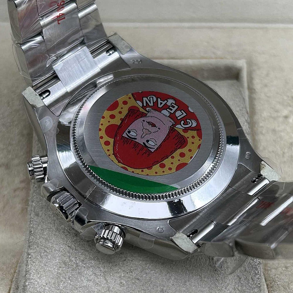 ムーブメント:この傑作な時計はクリーンファクトリーによるロレックス4130クローンコスモグラフムーブメントを搭載しています。ムーブメントには正しいシリアルナンバーと内側と外側同一なマッキングがあり、ロレックス正規品と見つけならないです。このムーブメントはスイープセコンド針は28,800 VPH (4Hz)でスムーズに作動することを確保しています。精度はCOSC認定範囲(-4+6秒/日)に抑えられており、パワーリザーブはほぼ48時間に誇り、安定性の象徴となっています。