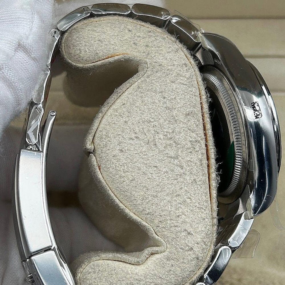 風防:クリーンファクトリーは耐傷性あるサファイアガラスを採用し、内側と外側には無色反射防止カーティングを施されており、ガラスの透明度を確保しています。6時のところにレザー刻印されたロレックス王冠が、その本物らしさを更に高めています。