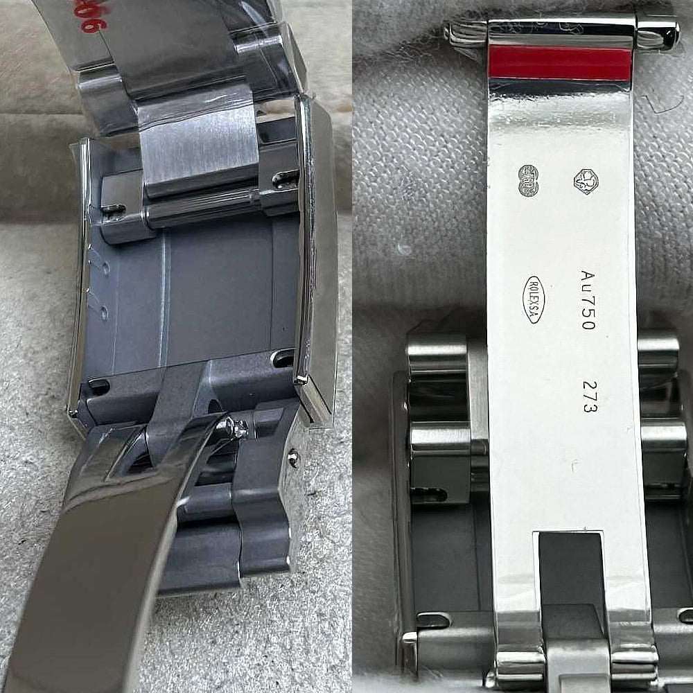 ベルト:ベルトは平たい3列なオイスタータイプにデザインし、快適な付け心地とスタイルをもたらします。クリーンファクトリーは904L高強度ステンレススチールを採用し、DLCスクラッチプロティング コーティングを施され、長持ちできるように作られています。しっかりとしたネジ山が所定の位置に固定され、折りたたみ式オイスターロック安全クラスプはEasylink 5 mm コンフォート エクステンション リンと組み合わせて、素早く長さを調整できます。