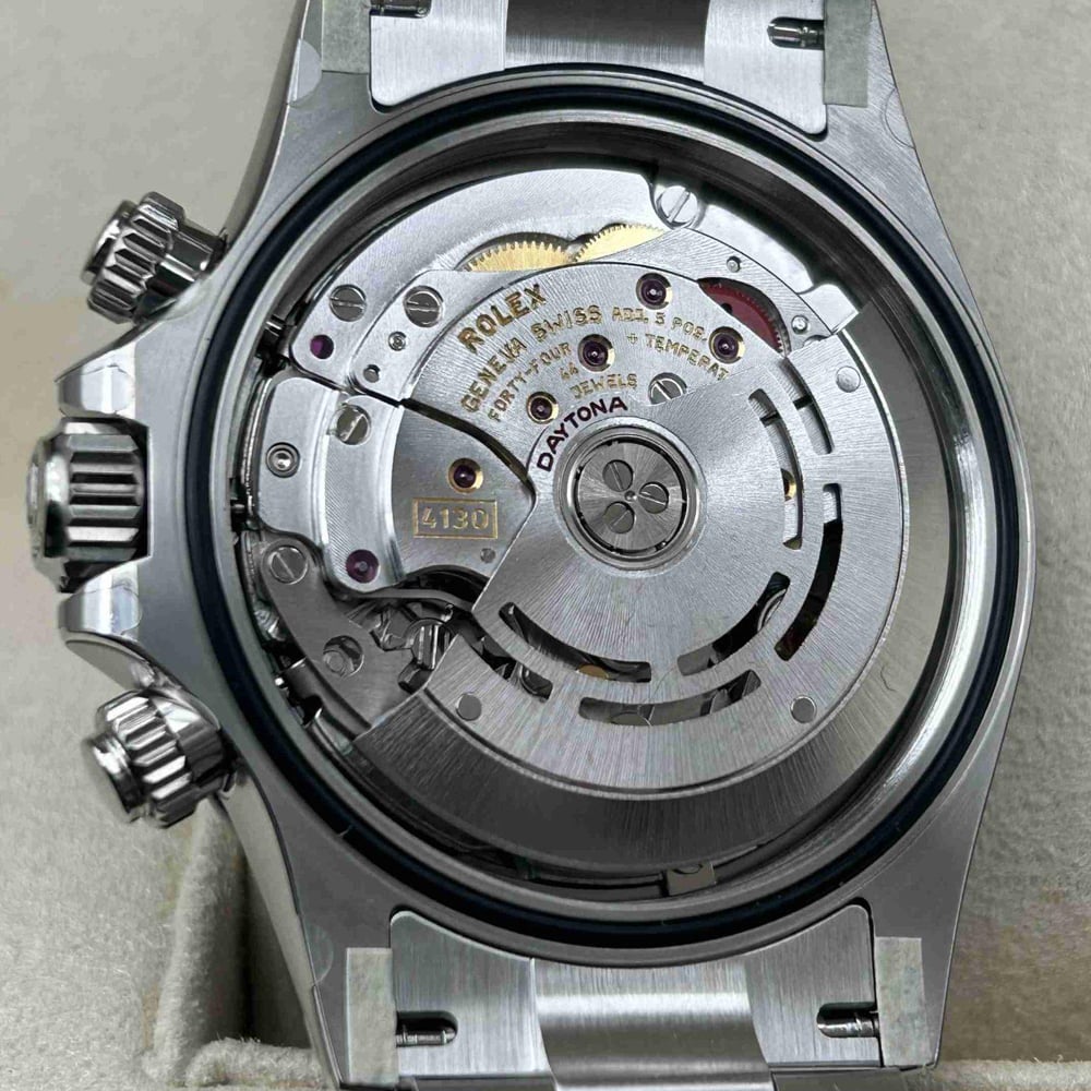 ムーブメント:この優れたモデルはロレックス 4130 クローン クロノグラフ ムーブメントが搭載されています。ムーブメントに刻印された正しいシリアルナンバーと内側と外側の同一の刻印が特徴で、正規品と見分けがつかないです。このムーブメントは、28,800 VPH (4Hz) で滑らかにスイープする秒針の動きを実現し、COSC 認証制限 (-4+6 秒/日) 以内の精度を維持できます。パワーリザーブ約48時間で、安定性の象徴です。