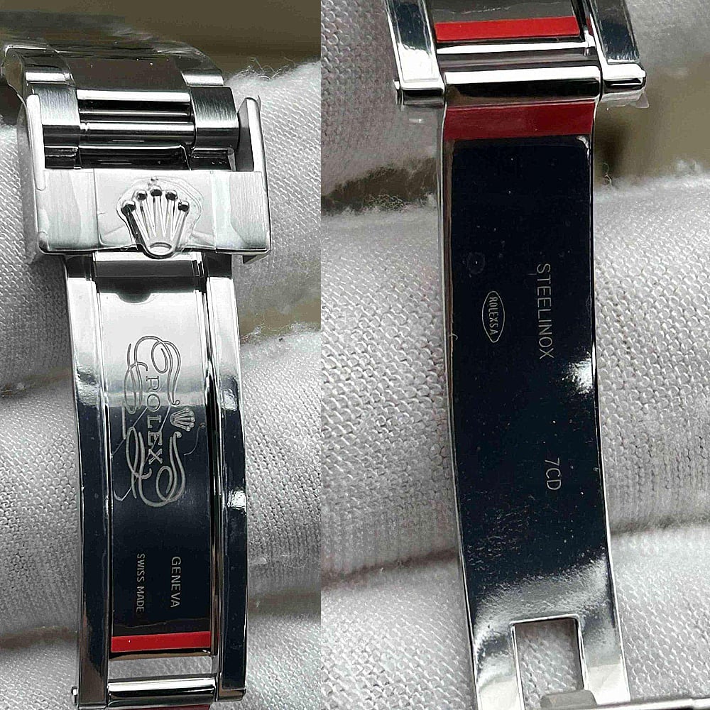 ベルト:ベルトは平たい3列なオイスタータイプにデザインし、快適な付け心地とスタイルをもたらします。クリーンファクトリーは904L高強度ステンレススチールを採用し、DLCスクラッチプロティング コーティングを施され、長持ちできるように作られています。しっかりとしたネジ山が所定の位置に固定され、折りたたみ式オイスターロック安全クラスプはEasylink 5 mm コンフォート エクステンション リンと組み合わせて、素早く長さを調整できます。