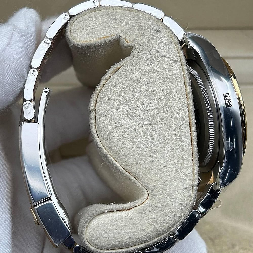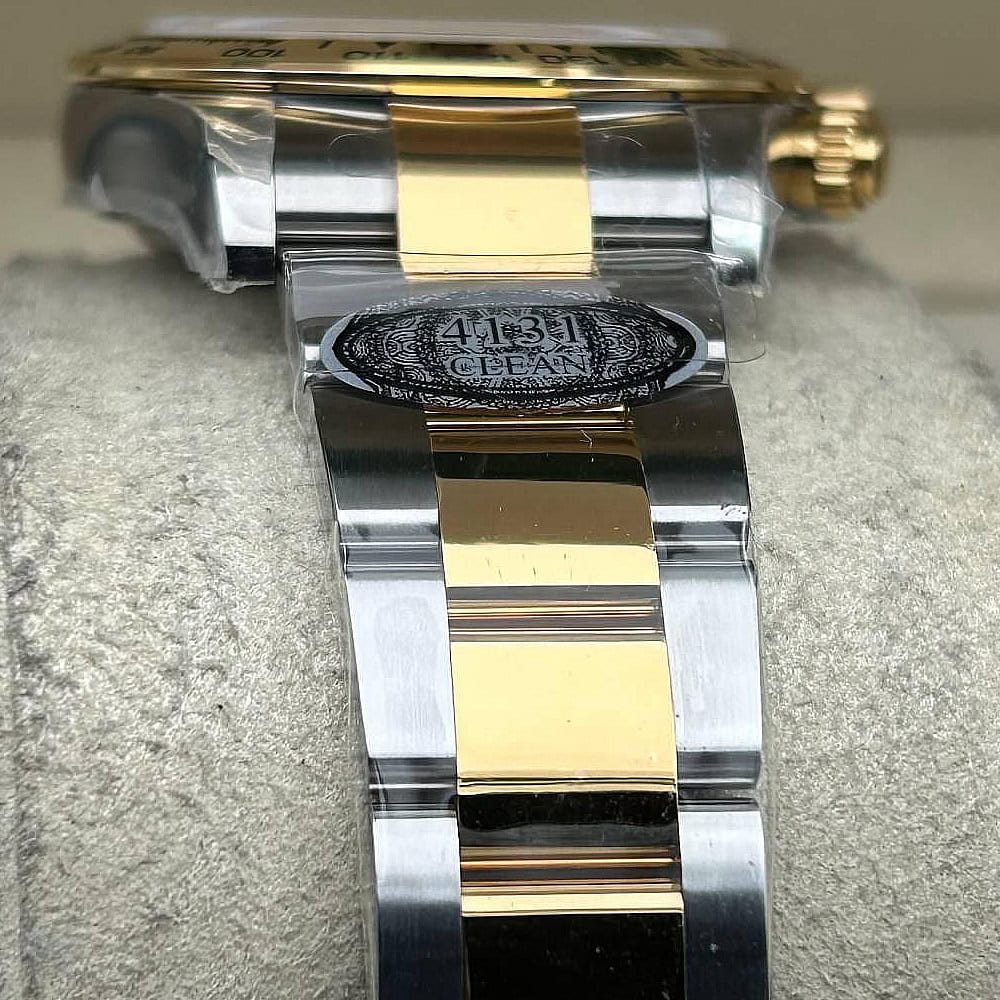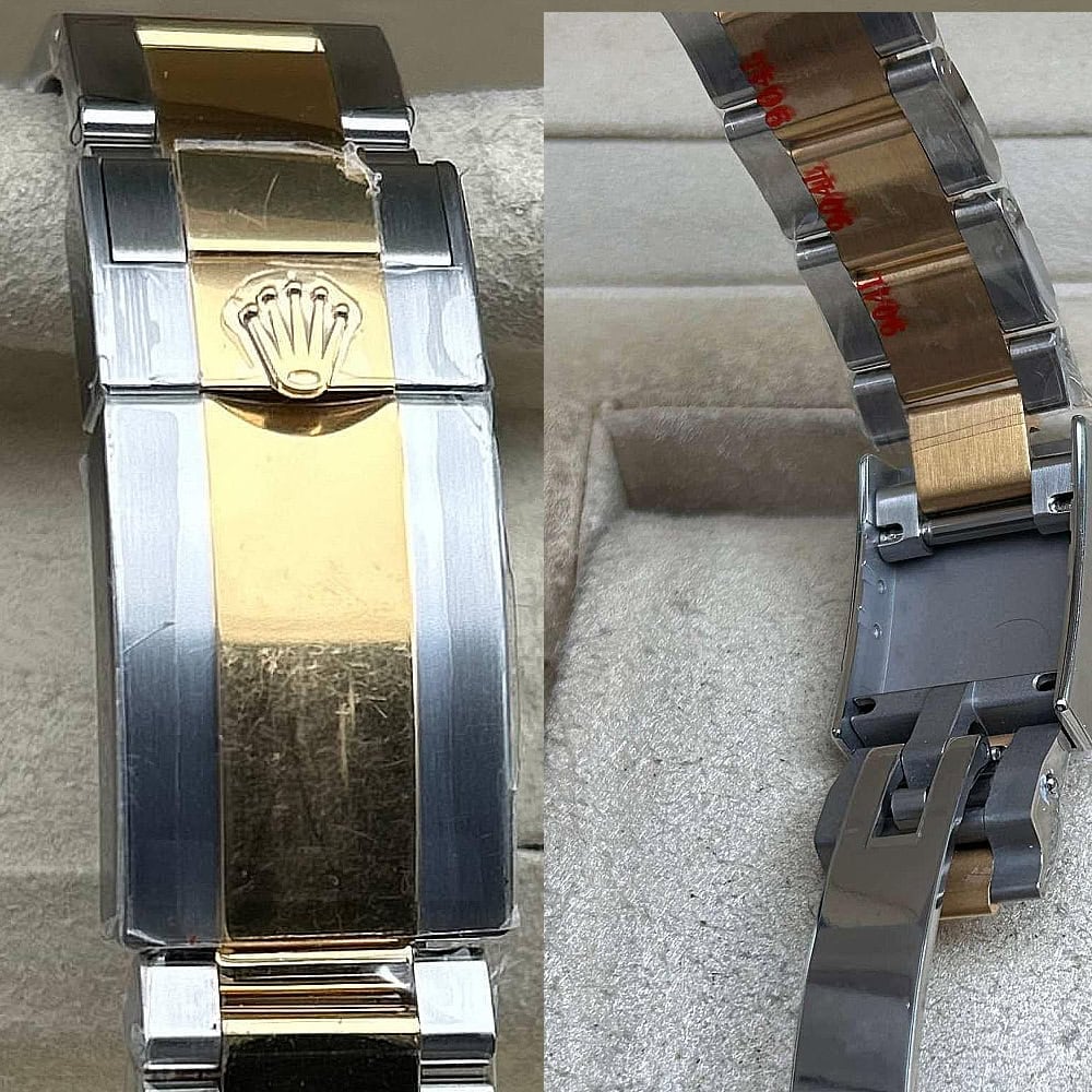 ベルト:ベルトは平たい3ピースリンクを象徴とするクラシックなオイスターデザインを採用されており、18Kイエローゴールドコーティングされた904Lステンレススチールで作り出されており、DLCスクラッチプロティングコーティングも施されています。ベルトはしっかりとしたネジ山と5 mm コンフォート エクステンション リンク(イージリンクとも言う)を備えた折りたたみ式オイスターロック安全クラスプを含まれています。