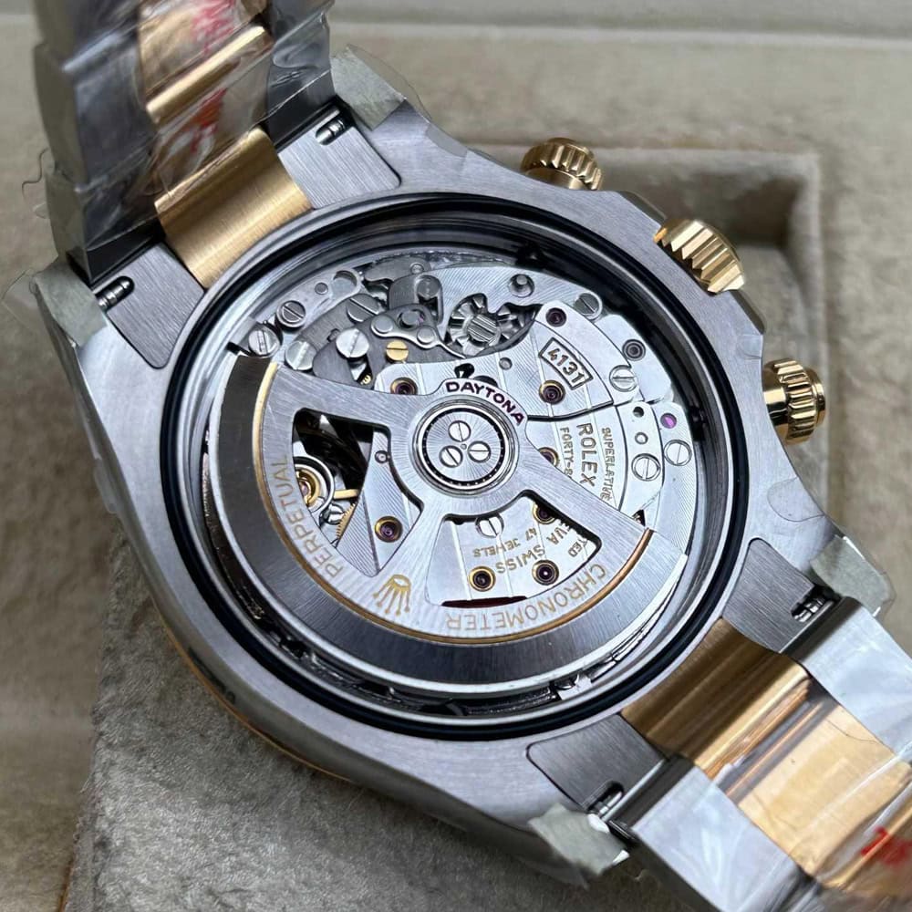 ムーブメント:クリーンファクトリーのエンジニアは4つのロレックス正規品ムーブメントを基づいて、専念に研究して、初の4131クローンムーブメントを作り上げました。精巧な技術と数え切れないほどの投資によって、クリーンファクトリーによる4131ムーブメントの厚さ約11.9MM、ロレックス正規品と一致させており、長期にわたって堅牢性と信頼性を確保しております。注意すべきなのはメインプレートです。ロレックスのバージョン4131ムーブメントのように、象徴的なコート?ド?ジュネーブストライプを見ることができます。このムーブメントは28,800 VPH (4Hz)で作動しており、精度は(-4+6秒/日)に抑えられており、パワーリザーブは約48時間です。センターセコンド針、3時位置の30分積算計、9時位置の12時間積算計を含むクロノグラフ機能は、時計製造における卓越性と革新性に対するクリーンファクトリーのコミットメントを際立たせております。