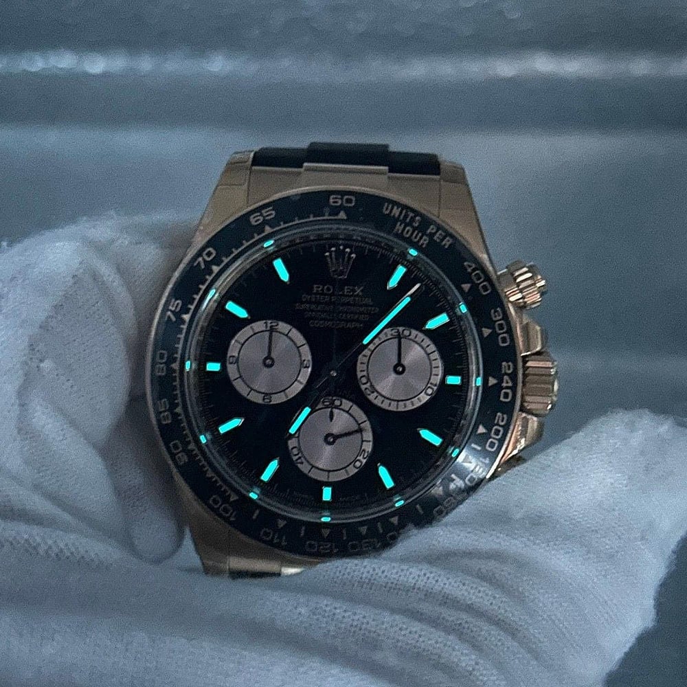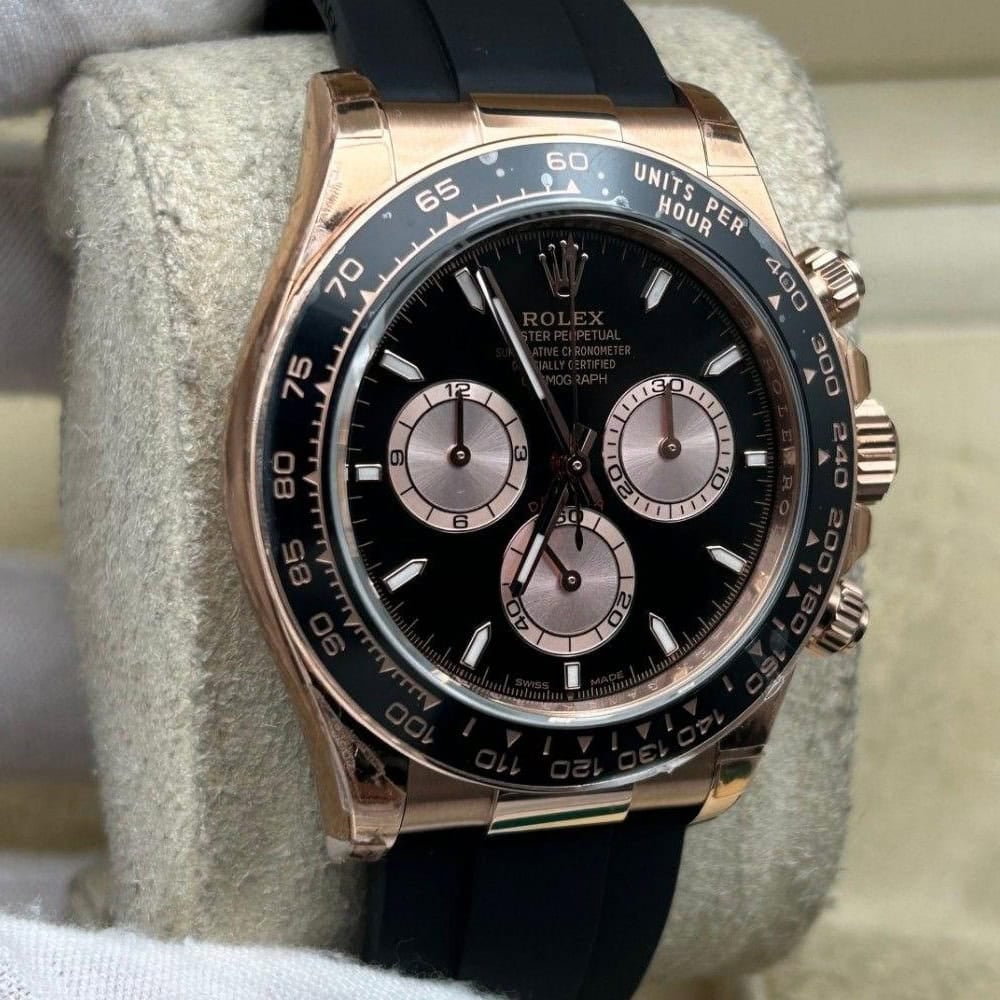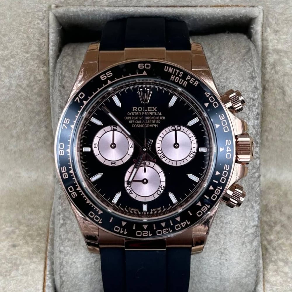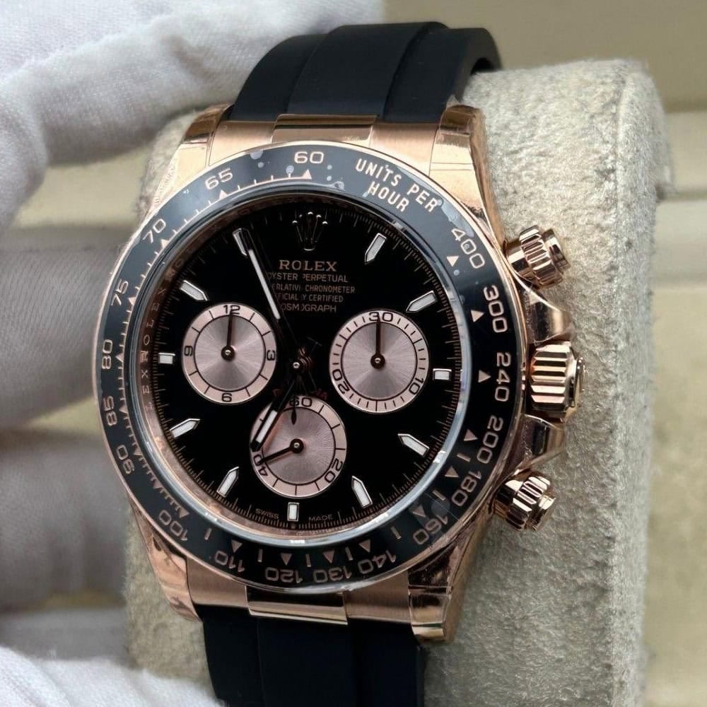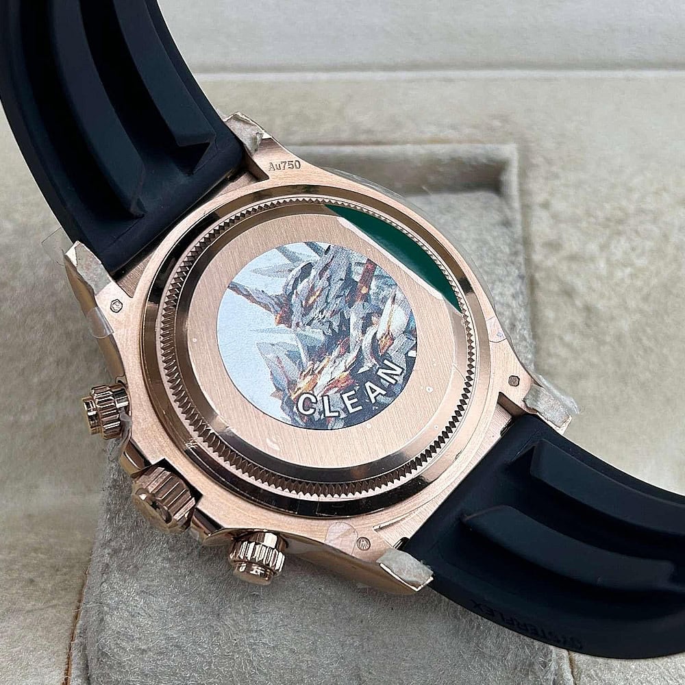 文字盤:ブラック文字盤とローズゴールドサブダイヤル、スティックマーカーと相まって、この時計のエレガンスさを表しております。 アワーマーカーと針にはスーパールミノバブルー蓄光コーティングされており、夜闇に9時間ぐらい視認性を確保できます。 クリーンファクトリーはあらゆるレーザーテキスト、プリント、刻印の精度がロレックス正規品と見分けがつけないことを確保しております。 アワーマーカーと針に施された18Kローズゴールドコーティングは時計の高級感を高めながら、色褪せすることを防止しております。