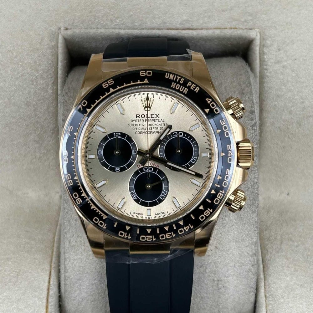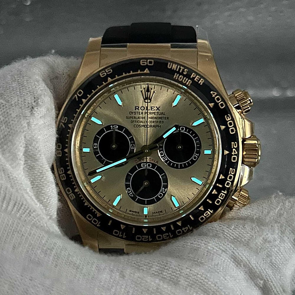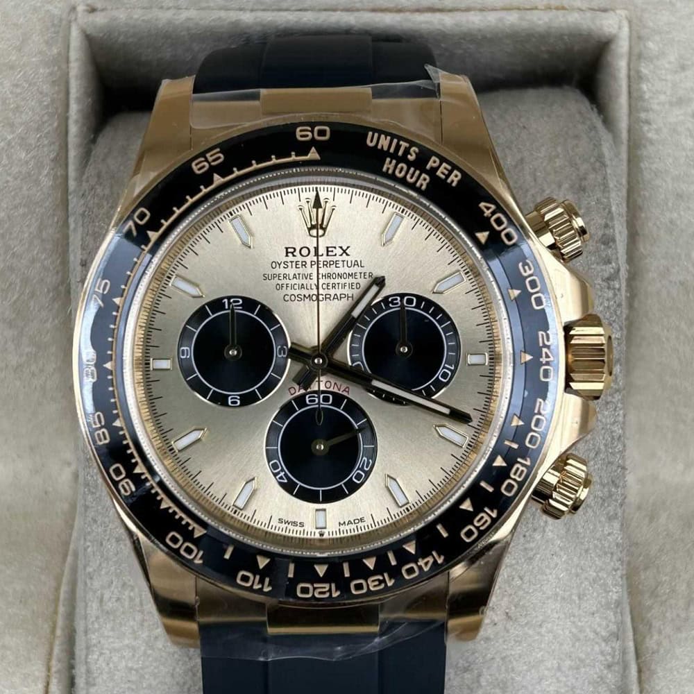 ケース:クリンファクトリーによるこのデイトナは本物18KイエローゴールドPVDコーティング加工された頑丈な904Lステンレススチールによって作りされております。40ミリのケースは完璧に正規品と一致しております。ケースは一体鍛造製法によって作り出されており、滑らかで洗練されたエッジが特徴です。頑丈なねじ込み式リューズはスイス製ラバー?シールと完璧に組み合わされております。RehautにはROLEXROLEXの刻印が刻まれており、あらゆる方面はロレックスデザインを一致しております。