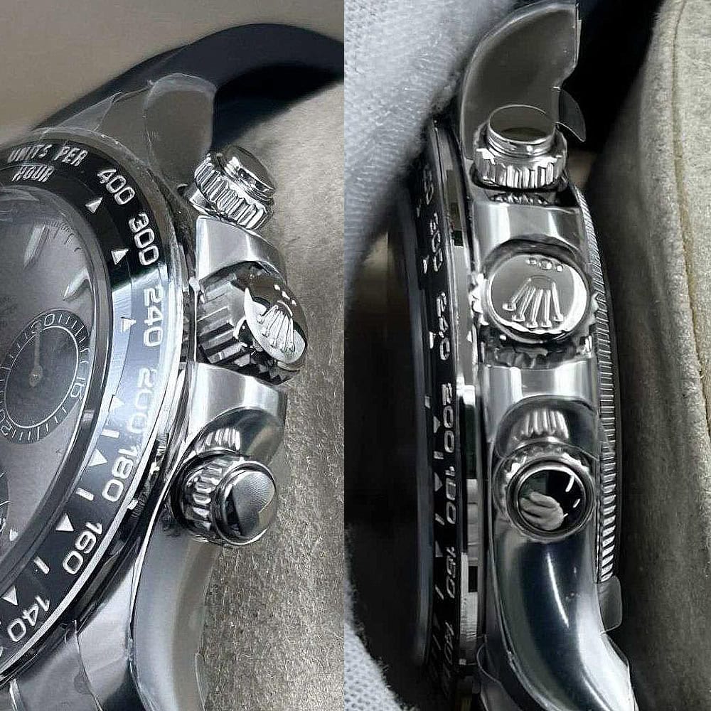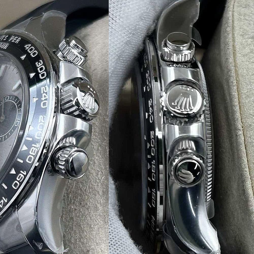 ケース:クリーンファクトリーのケース?エクセレンス:この40ミリモデルは18Kホワイトゴールドコーティングされたソリッド904Lステンレススチールによって作り出されおり、モノブロック構造はロレックス正規品と一致しております。この時計は合成ラバーで密封されたねじ込み式ケースパックとプッシュボタンを備えており、ロレックスデザインの完成性を維持しております。RehautリンクにROLEXROLEXレーザー刻印を刻まれており、DLCスクラッチプロティングコーティングはクリーンファクトリーがディテールへの拘りを証明しております。寸法から重さに至るまで、あらゆるディテールは完璧にロレックス正規品と一致するように還元されており、あらゆる部品は正規品と交換性があります。