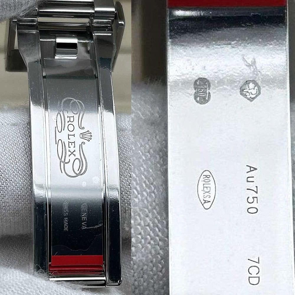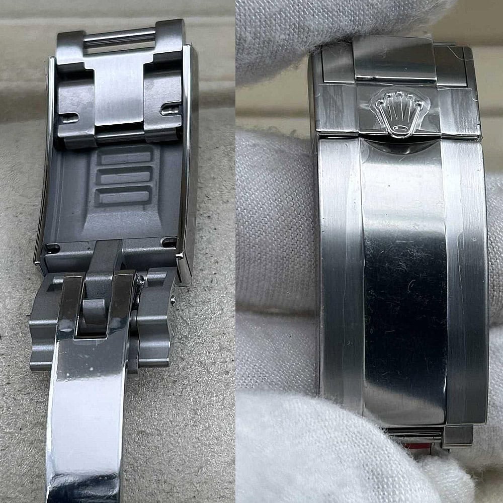 ベルト:メタルブレードの芯にブラックのエラストマーをオーバーモールドされた高性能のラバー製オイスターフレックス?ブレスレットは耐久性と快適性を備えております。ベルトには18kホワイトゴールドコーティングされたソリッドな904Lステンレススチールによって作り出された折畳式オイスター安全スクラップを備えており、確実なフィット感を確保しております。