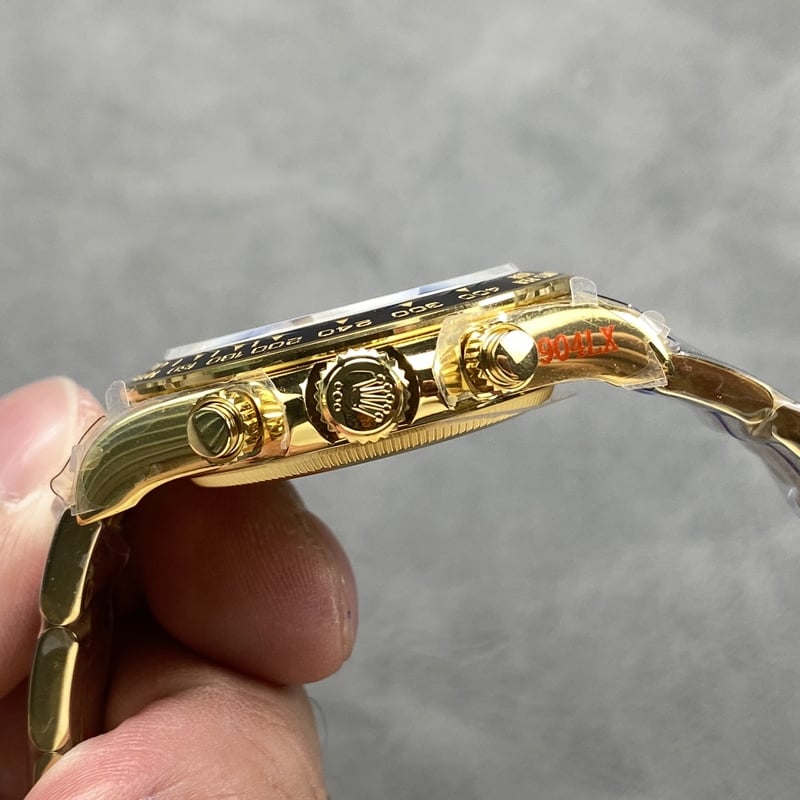 18Kイエローゴールドコーティングされた904Lステンレススチールで作り出されており、