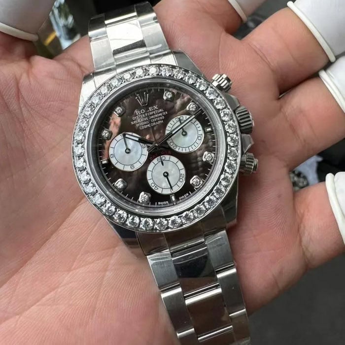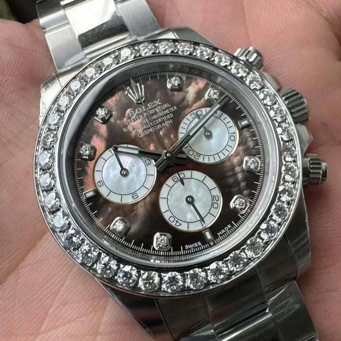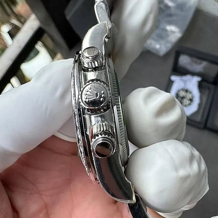 ベゼル:ベゼルはモアサナイトダイヤモンド飾られ、本物のデザインを反映しています。